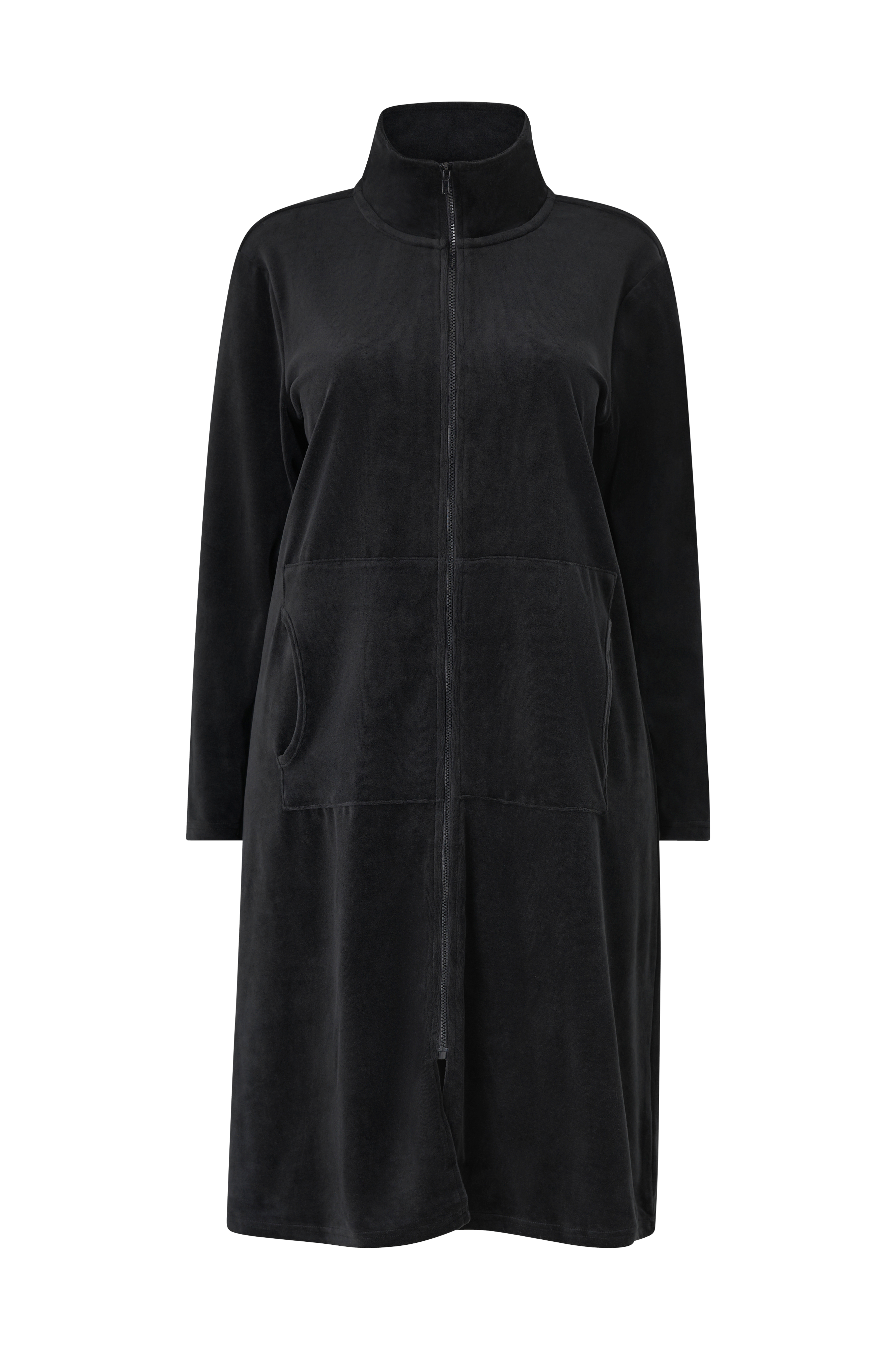 • Morgenkåbe i blød velour• Løs, komfortabel pasform• Høj halsudskæring• Fuld længde lynlås• To lommer• Store størrelser