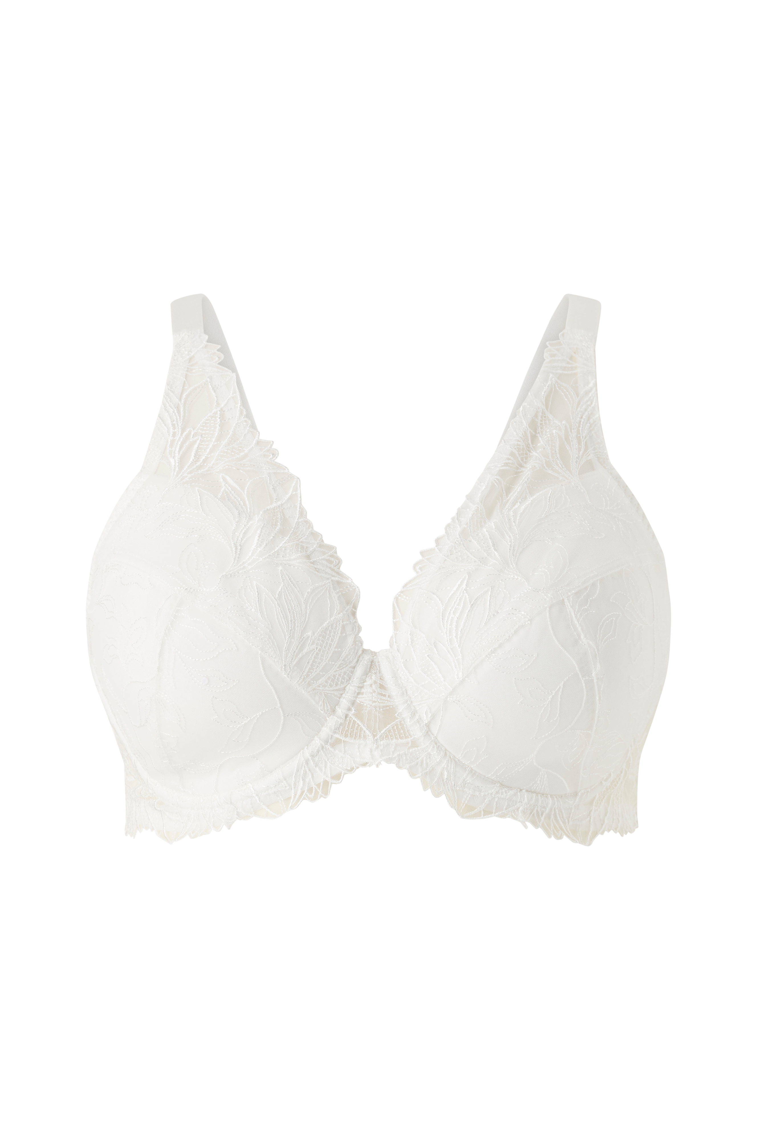 • Blondeklædte skåle med tynd polstring• Støttende bøjle• Justérbare skulderstropper• Bred hægtelukning