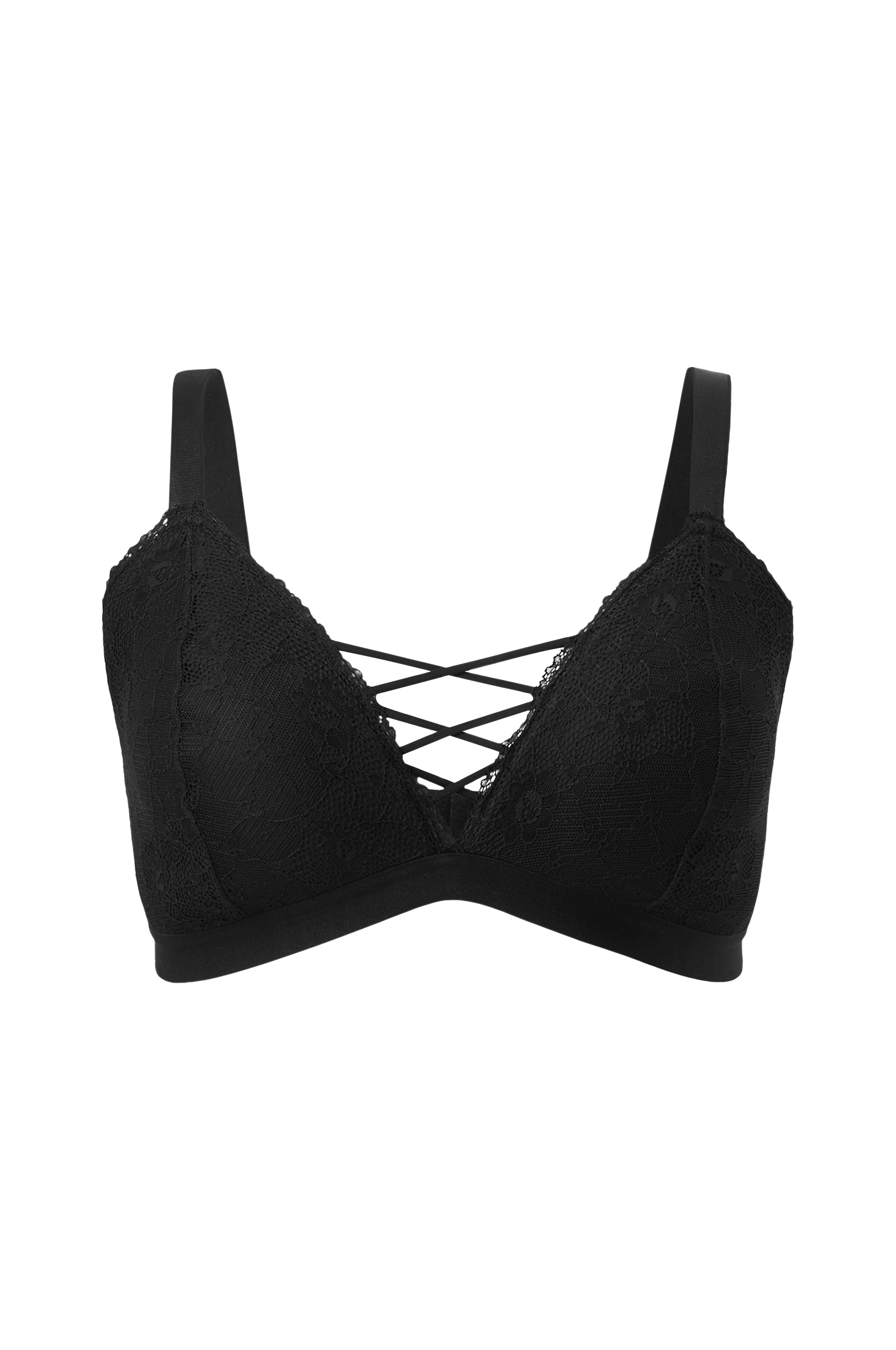 • Formede blondecups med tynd polstring• Elastik nederst• Dekorative snørebånd foran• Justérbare skulderstropper• Bred hægtelukning bagpå