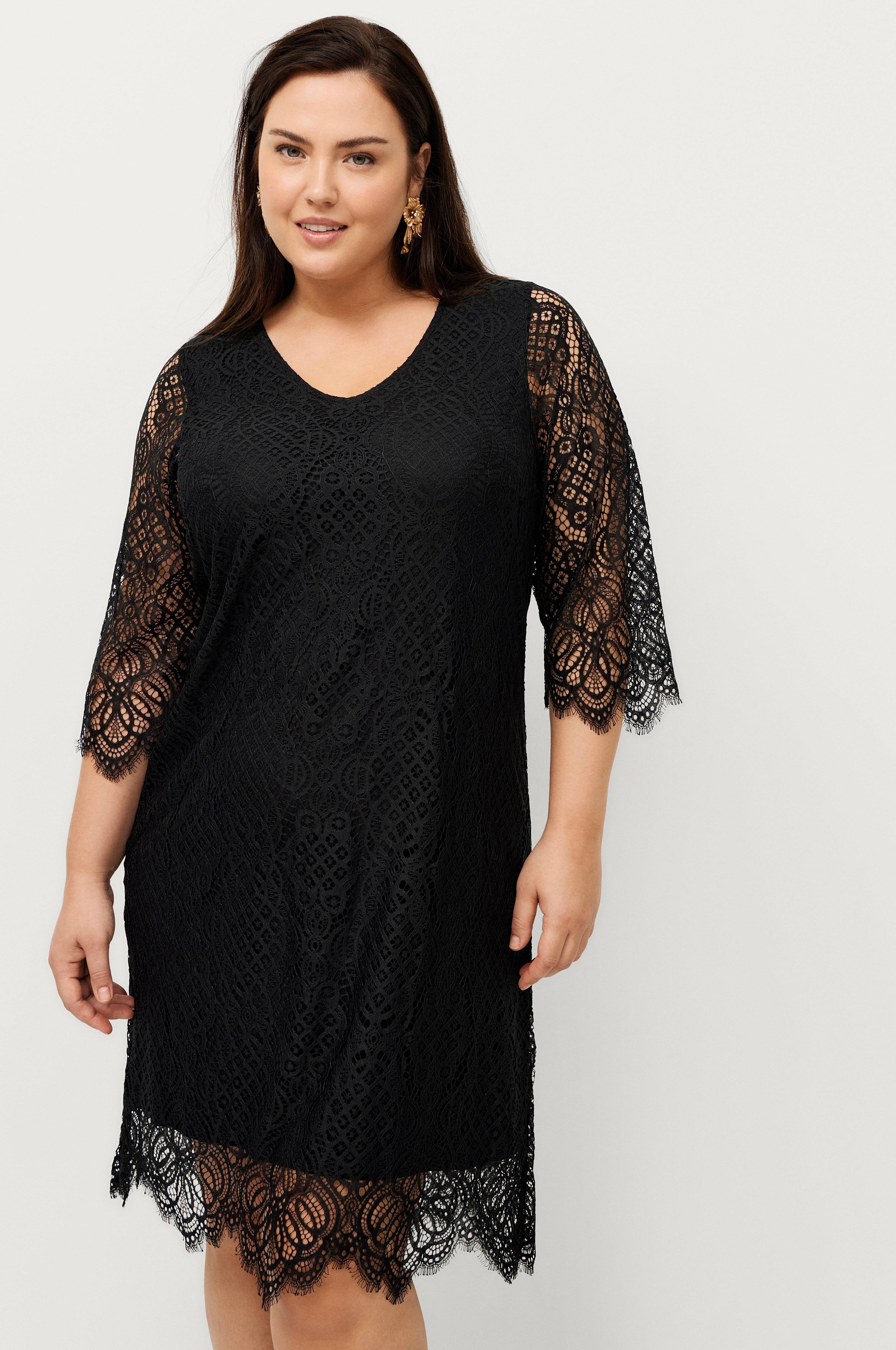 • Store størrelser• V-udskæring• 3/4 lange, transparente ærmer• Bølget søm• For i jersey• Længde: 110 cm i størrelse S