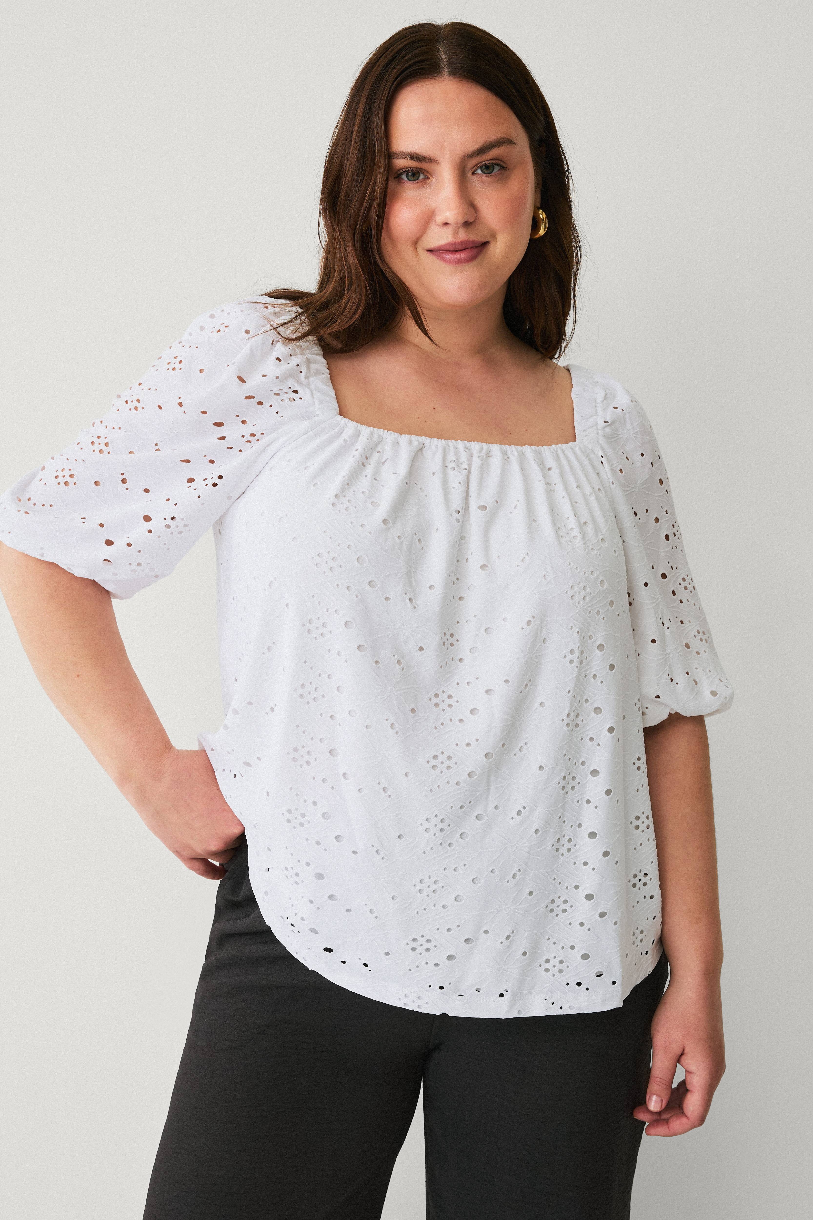 Fin top/bluse. Ikke for vid halsudskæring, på trods af at jeg har smalle skuldre