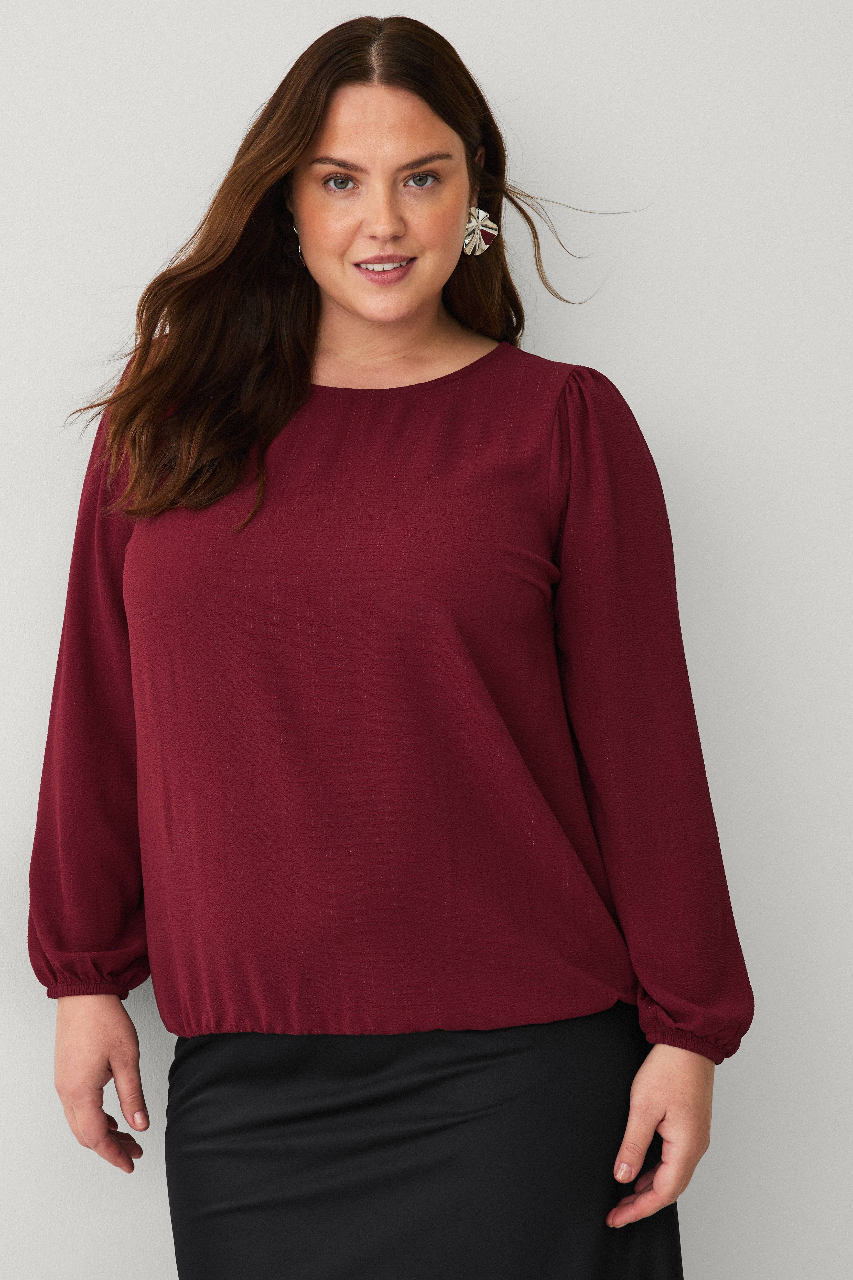 • Elastisk bluse med glitrende, smal stribe• Rund halsudskæring• Ventilation med knap i nakken• Lange ærmer med elastik ved manchetterne• Store størrelser