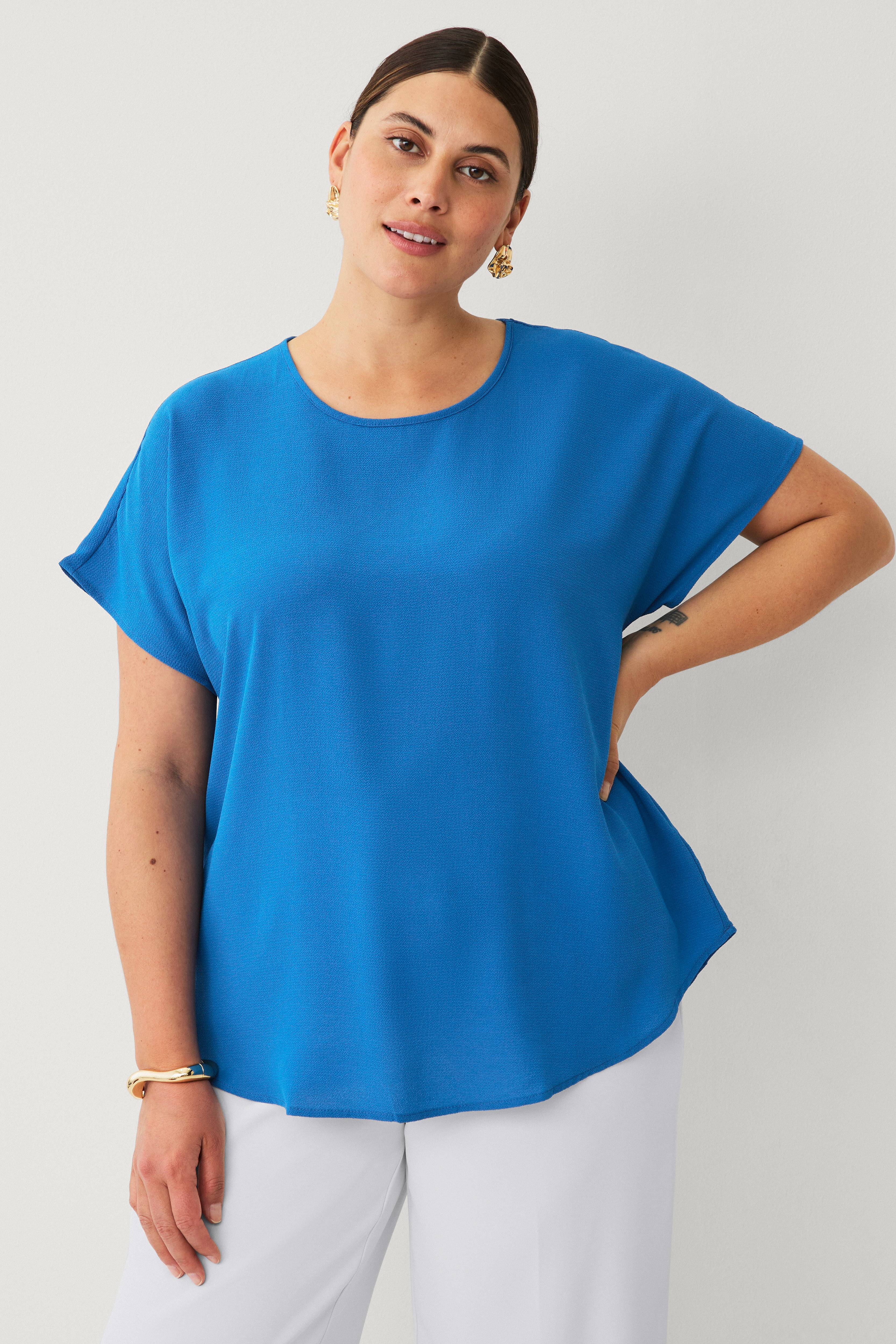 • Rund hals• Korte ærmer• Afrundet søm• Kreppet kvalitet