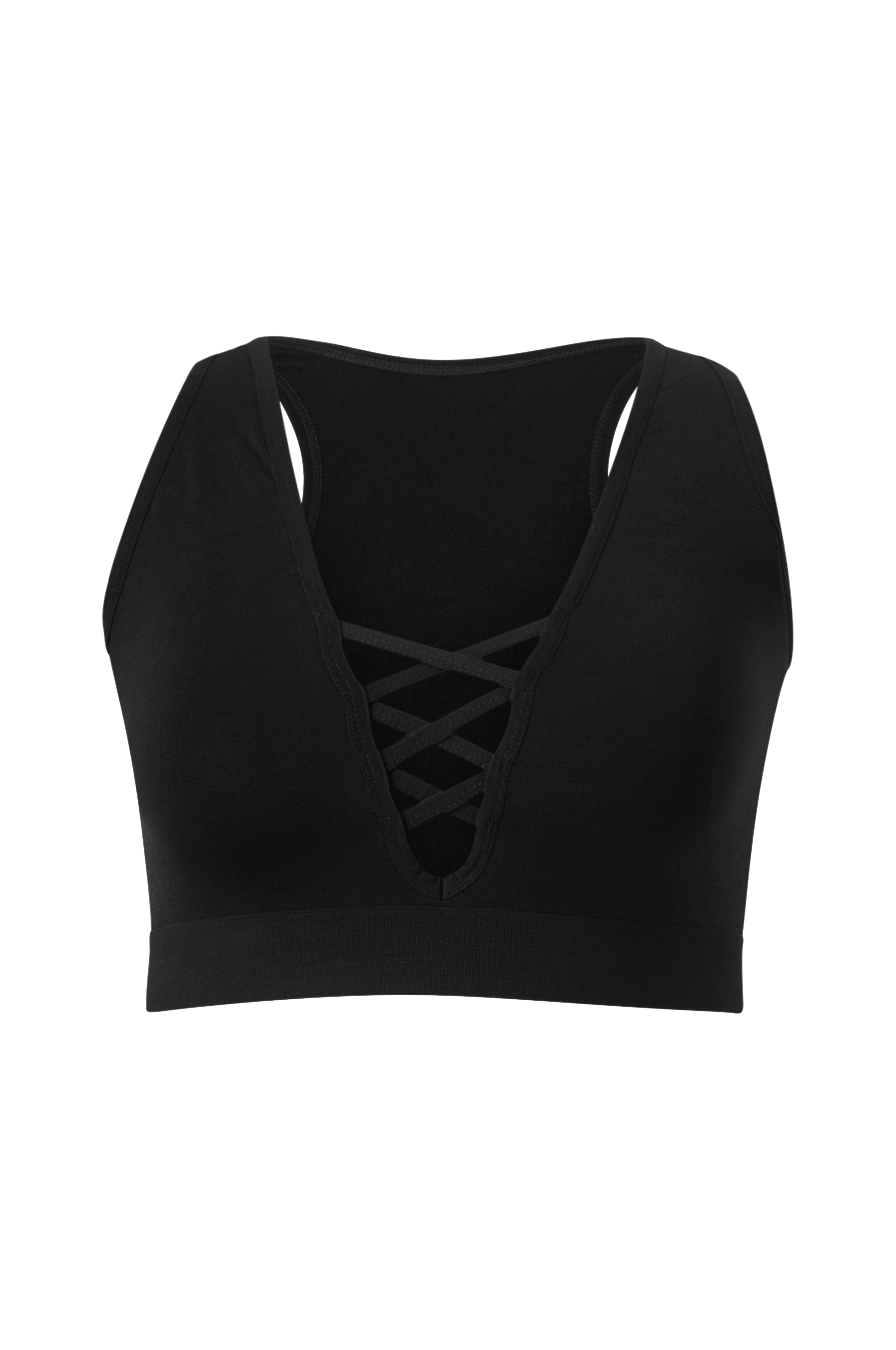 • Bryderryg• V-udskæring med krydsende stropper• Elastisk bånd nederst