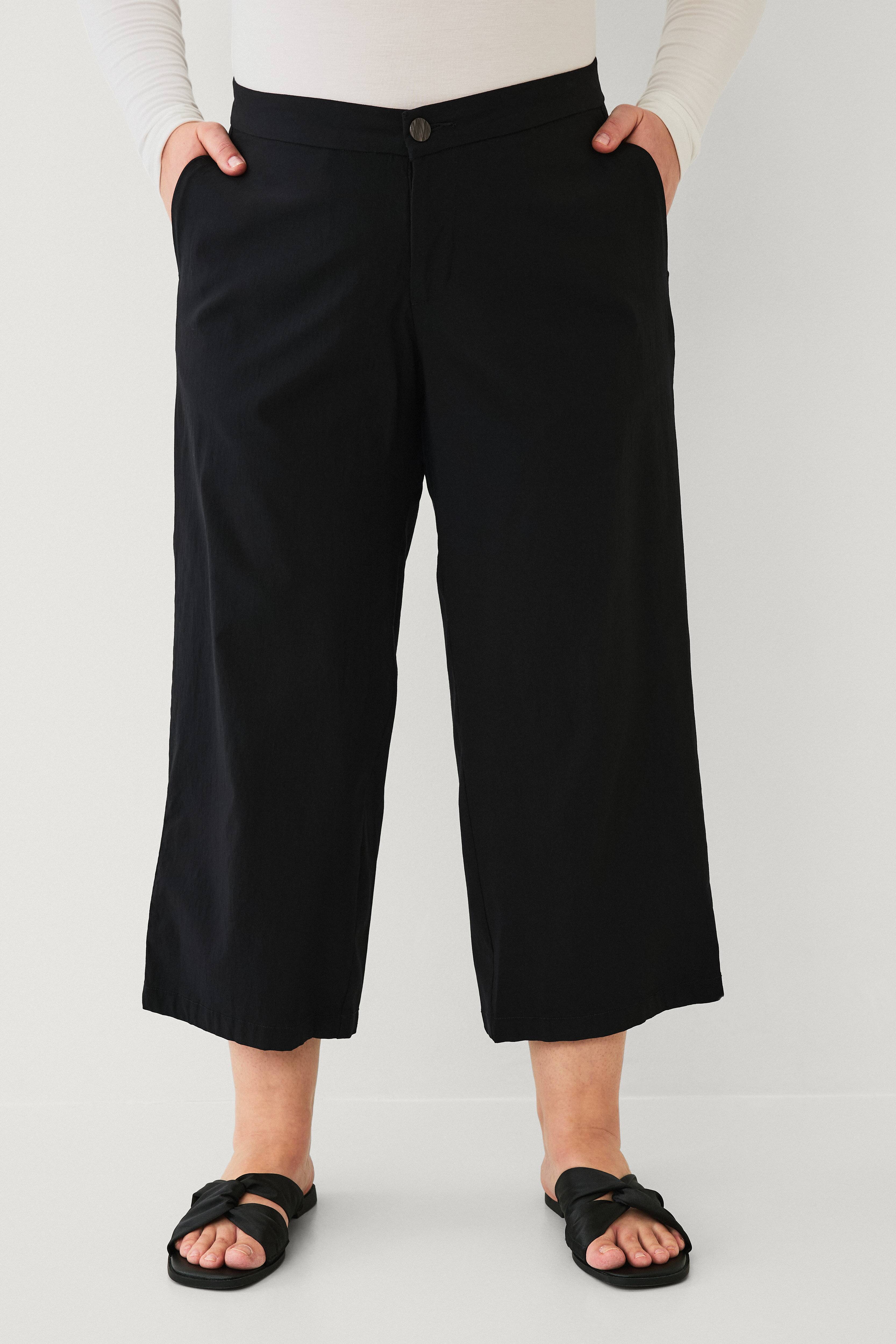 • Bukser med 7/8-længde• Culottedesign med brede ben• Knaplukning• Gylp med lynlås• Sidelommer• Strækkvalitet• Store størrelser• Indre benlængde: 65,5 cm i størrelse 42