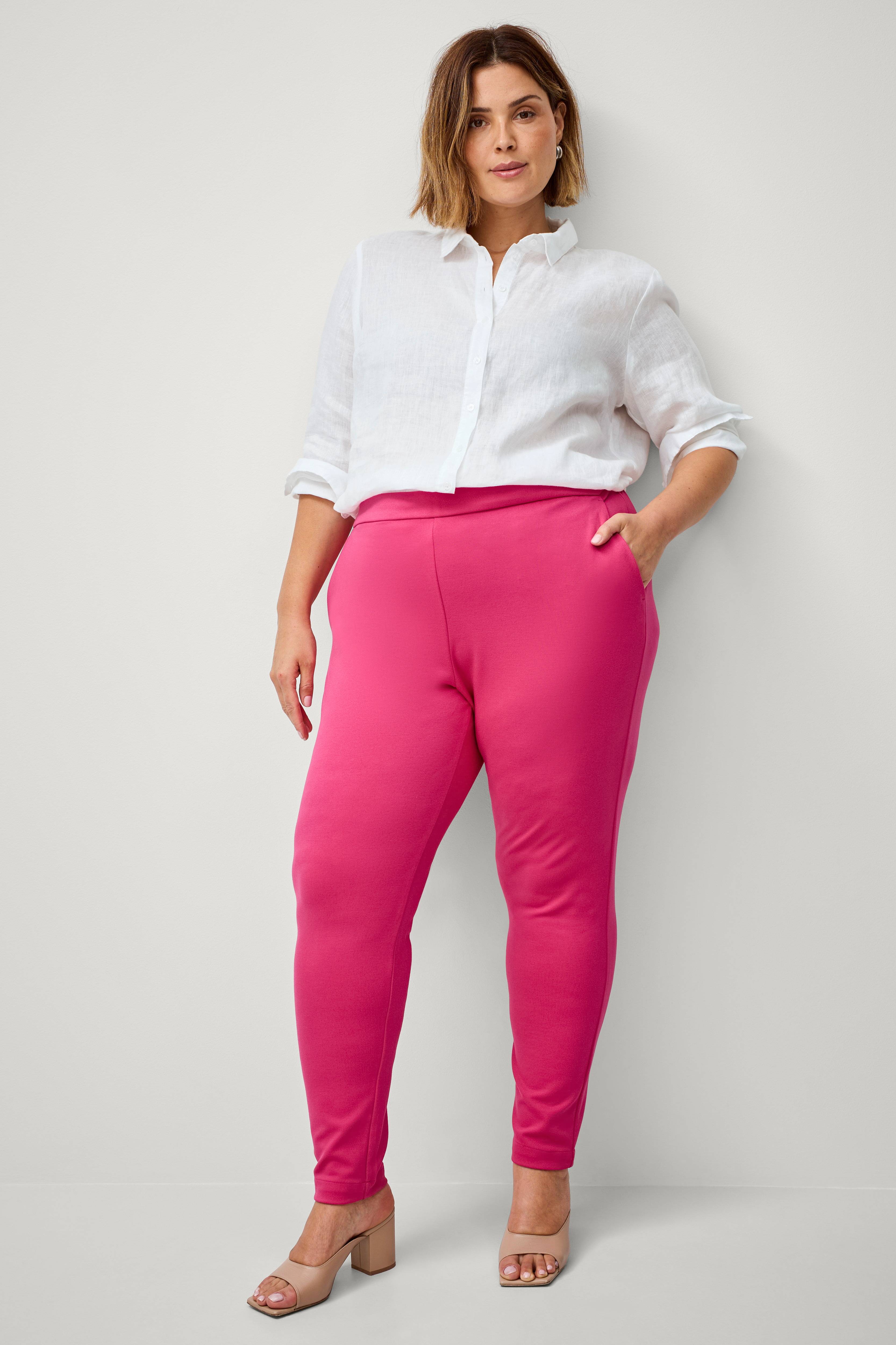 • Bukser i jersey• Indsnævrende pasform• Ankellange ben• Elastisk talje• Lommer i siderne• Snydelommer bagpå• Store størrelser• Indre benlængde: 70 cm i størrelse S