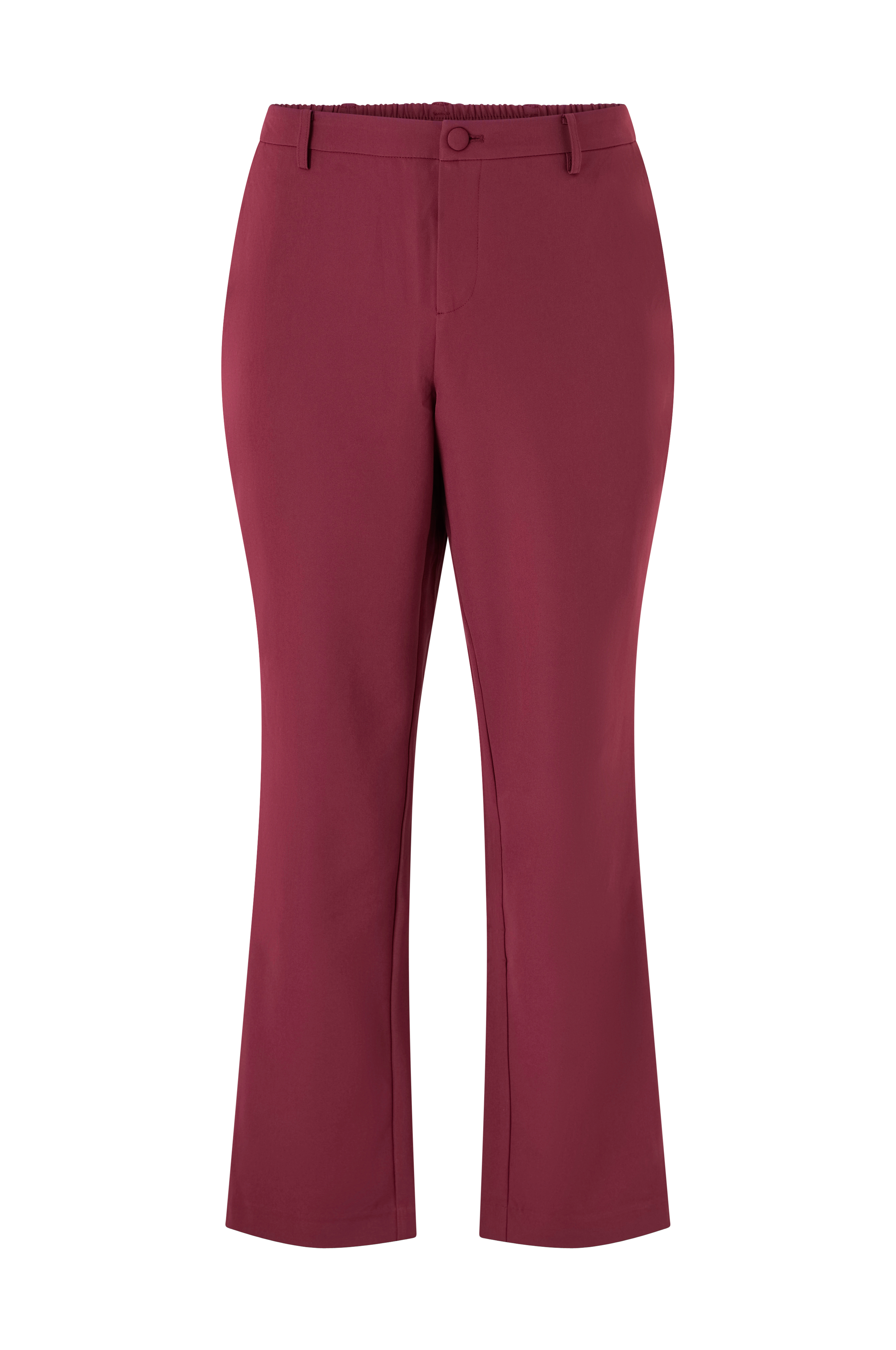 • Højtaljede bukser med normal pasform• Elastik bagpå ved taljen• Gylp med lynlås med beklædt knap• Sidelommer• Snydelommer bagpå• Plusstørrelser• Indre benlængde: 79 cm i størrelse 42
