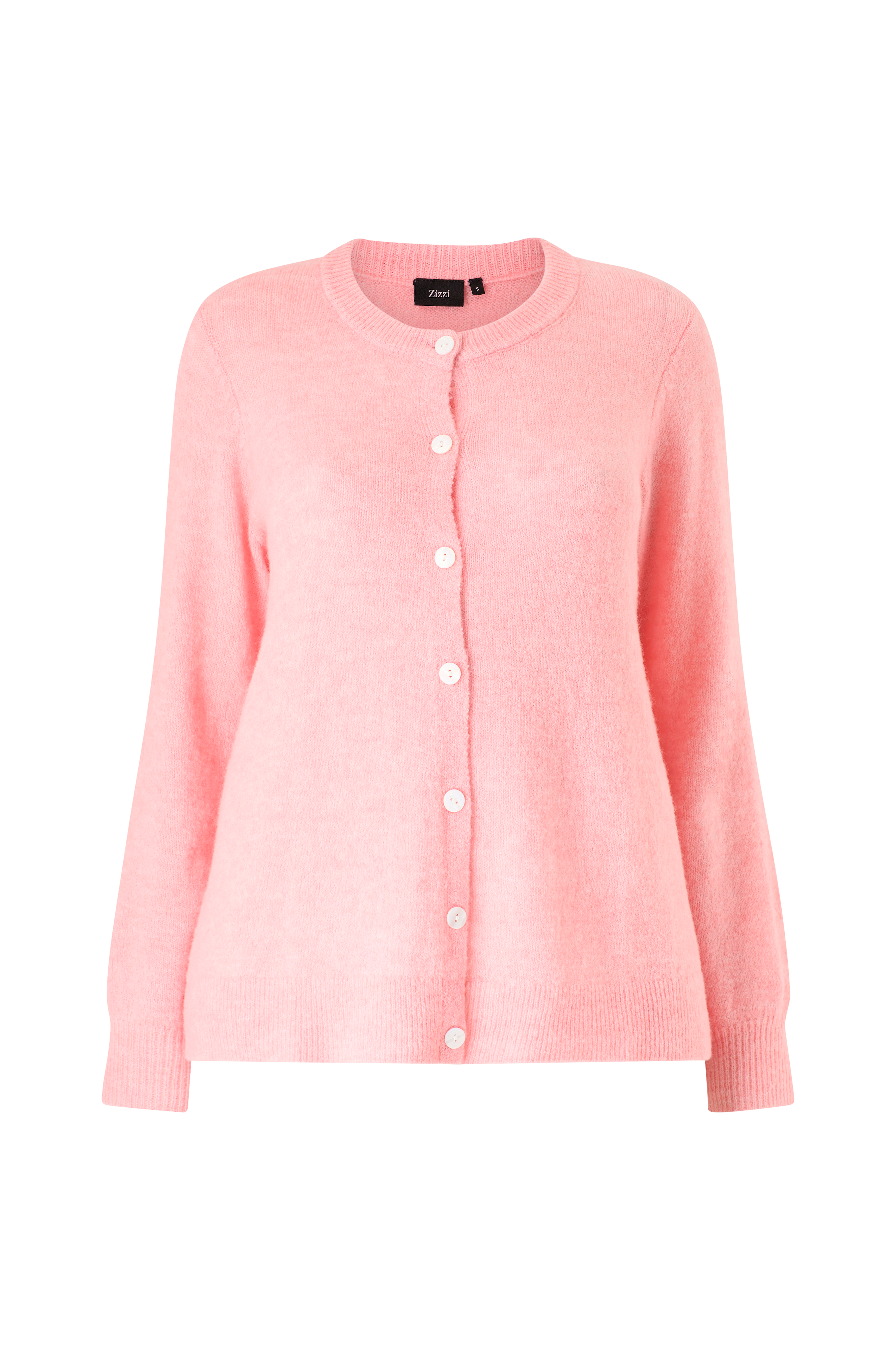 • Langærmet, fintstrikket cardigan• Rund, ribbet halsudskæring• Knapper foran• Ribstrik ved manchetterne og ved nederste kant• Plusstørrelser