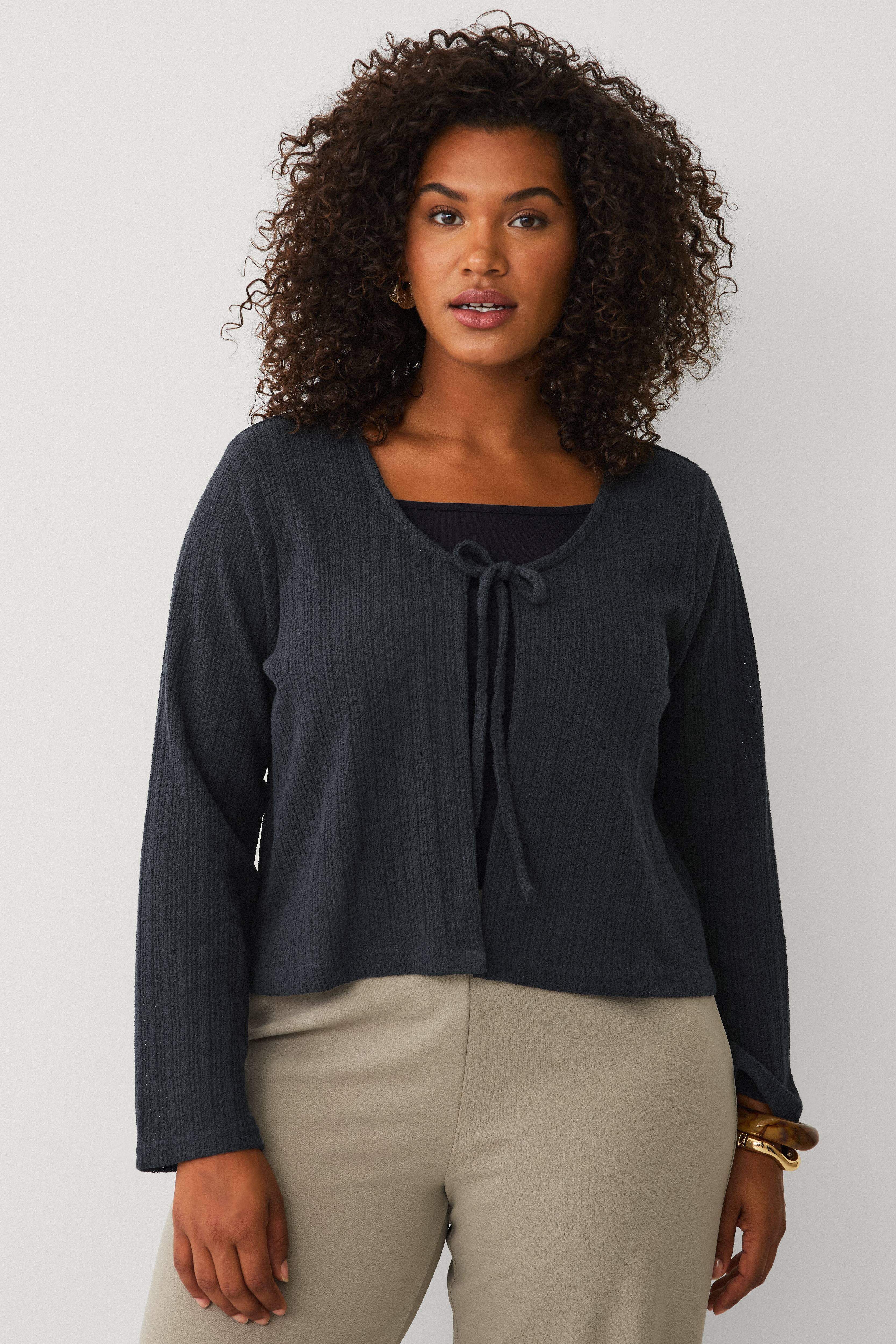 • Hulmønstret cardigan• Rund halsudskæring med bindbart bånd• Lange ærmer• Store størrelser