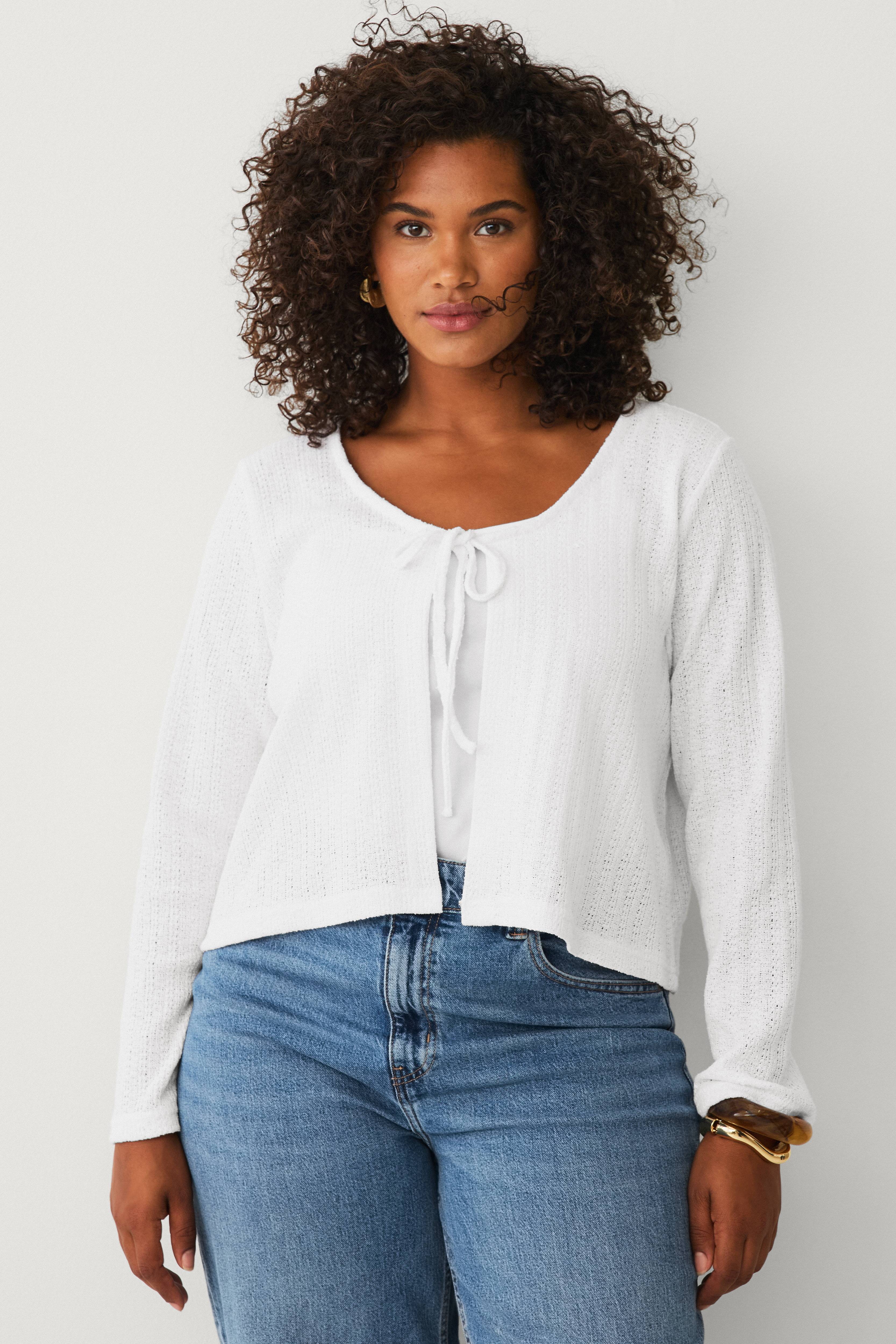 • Hulmønstret cardigan• Rund halsudskæring med bindbart bånd• Lange ærmer• Store størrelser
