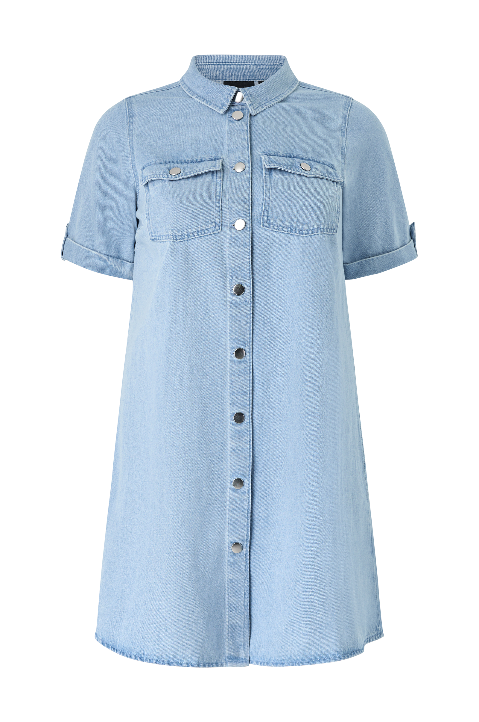 • Skjortekjole i denim• Knapper hele vejen frem• Korte ærmer med foldede ærmeafslutninger• Brystlommer med låg• Plusstørrelser• Længde: 98 cm i størrelse S