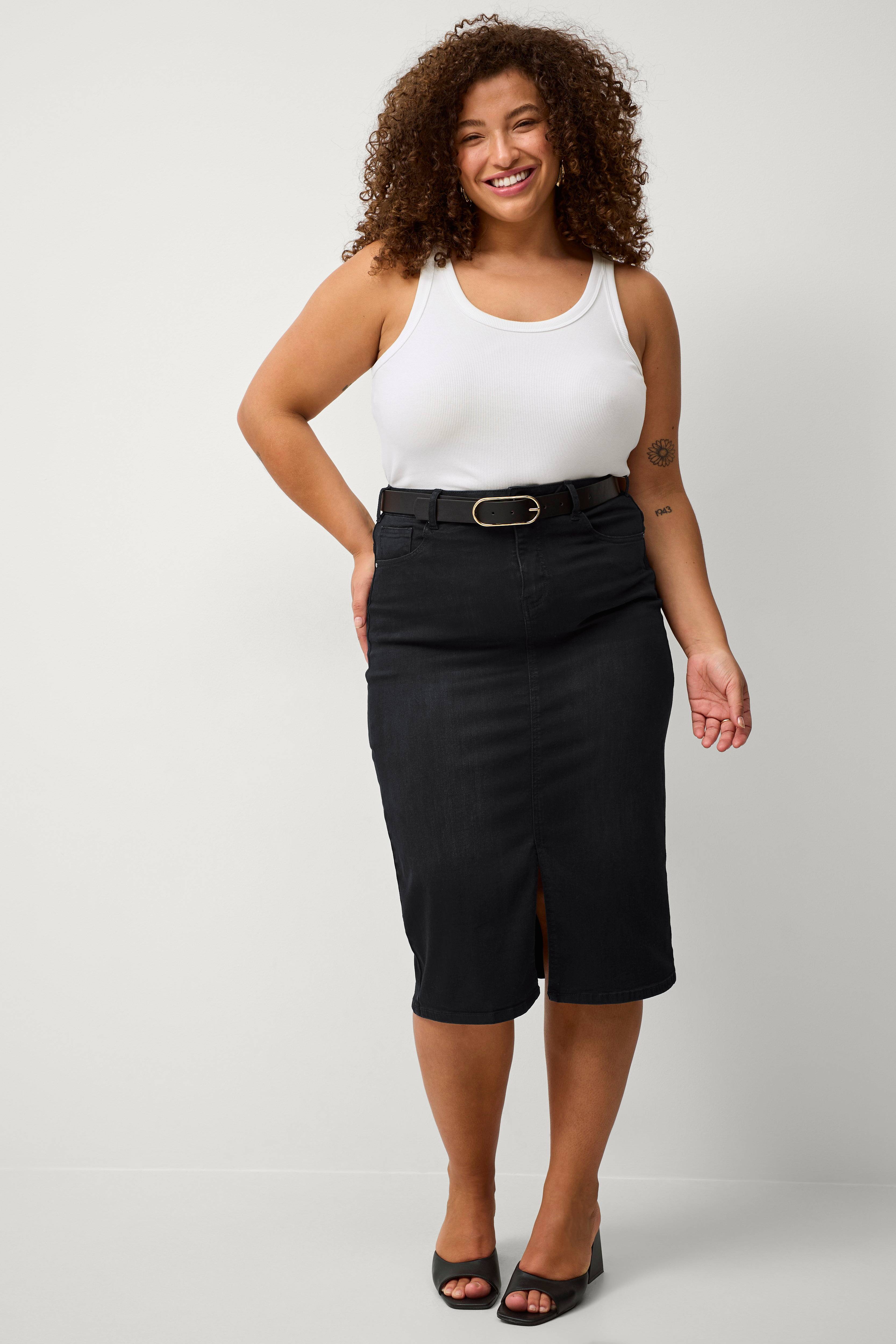 Meget flot og brugbar. Plejer at købe str. 42-44 og valgte 42 i denne, som blev perfekt. God stretch og perfekt længde. Minus for sømmen øverst i slidsen, som ikke ser…