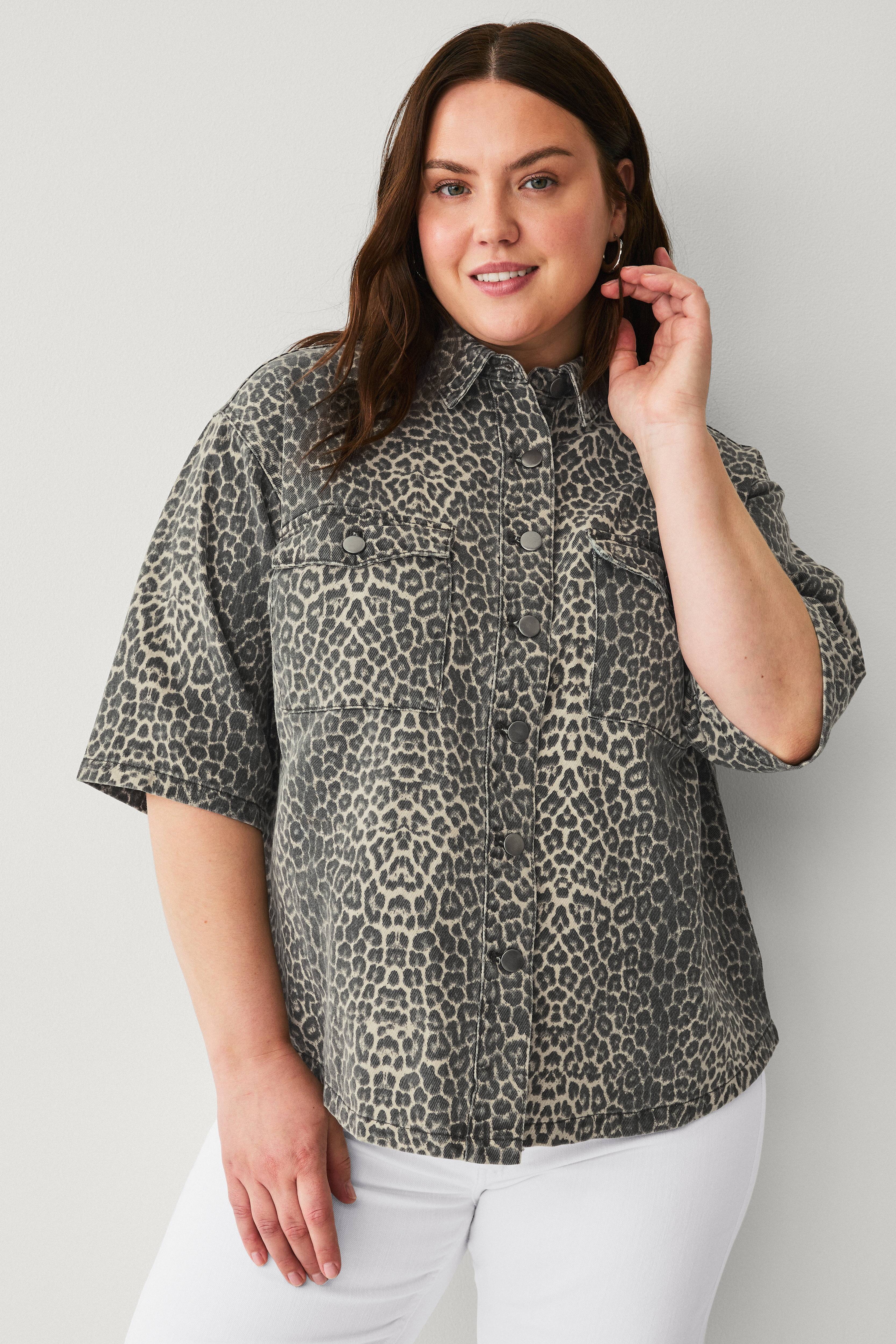 • Kortærmet cowboyskjorte med leopardmønster• To brystlommer med låg• Store størrelser