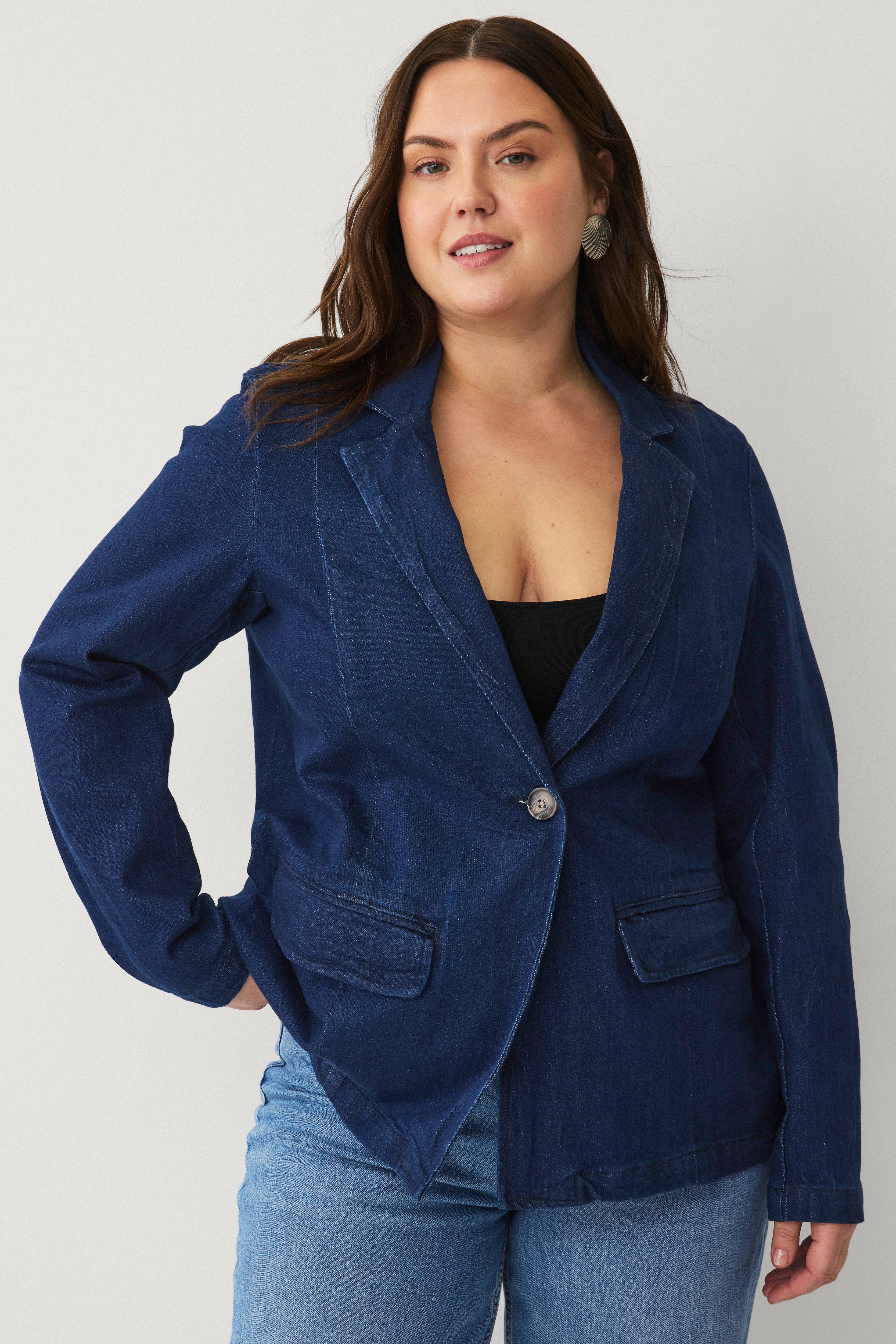 • Habitjakke i bomuldsdenim• Lukning med en knap• To lommer med lommelåg• Normal pasform• Ventilation nede bagved• Store størrelser• Længde: 73 cm i størrelse 42