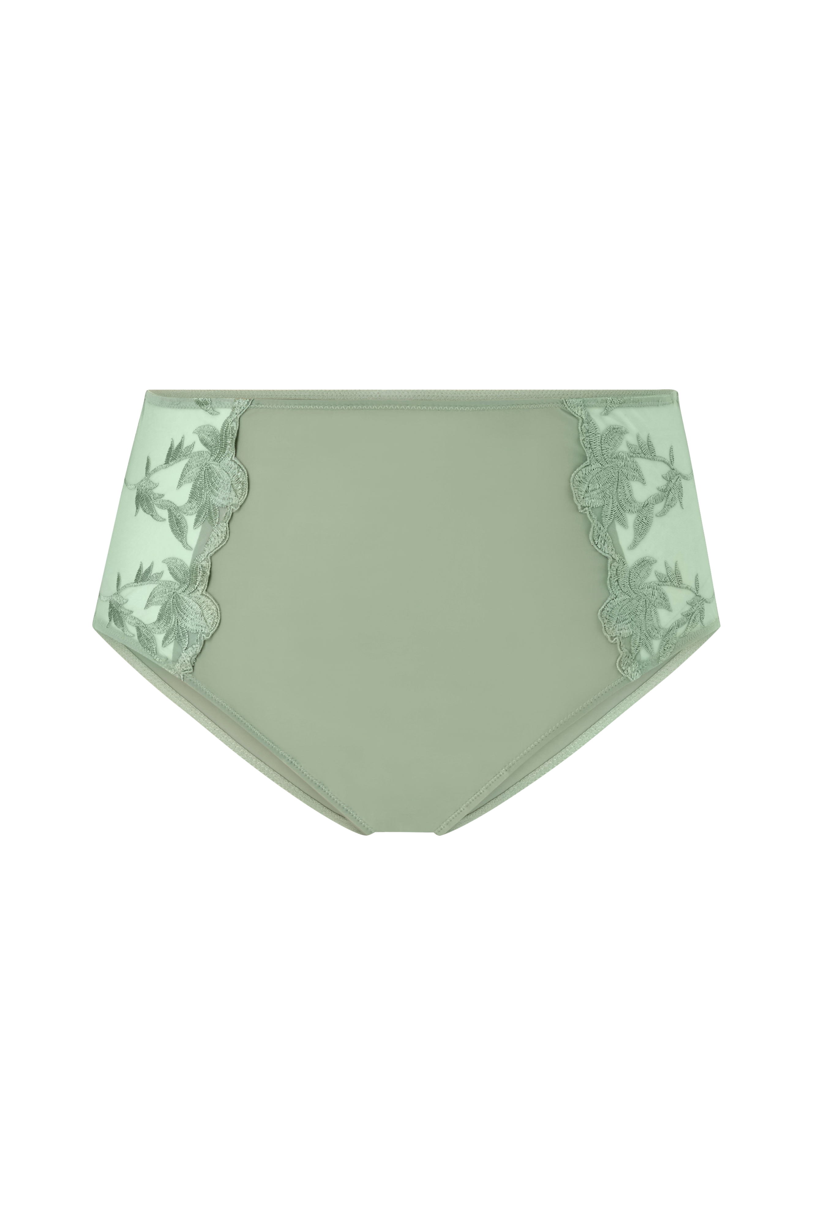 • Mesh med broderet mønster i siderne• Tynd elastik ved taljen• Foret skridt