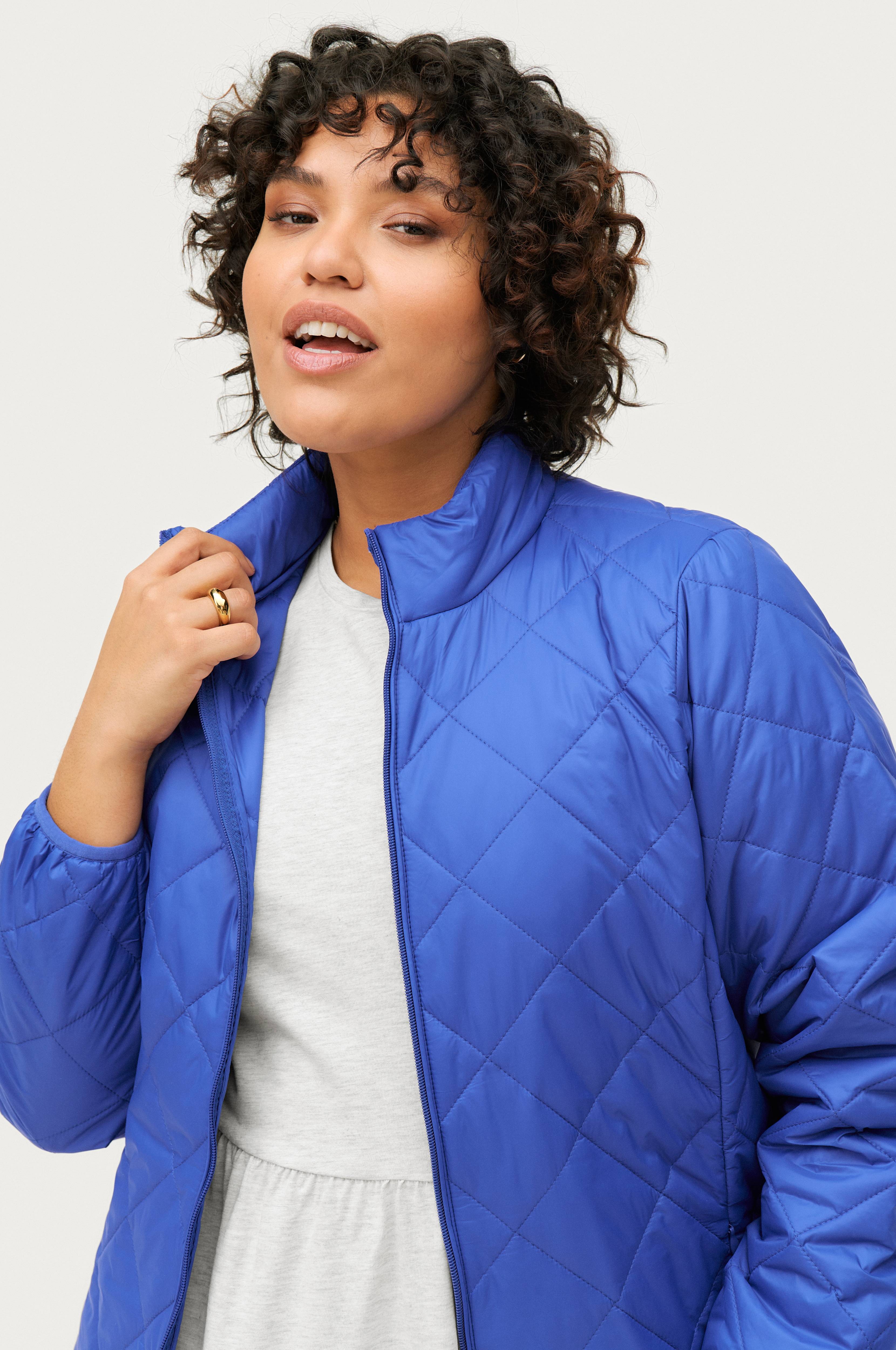 • Quiltet, foret jakke • Letvægtsmodel • Høj krave • Lynlås • To lynlåslommer • Elastisk bånd ved manchetterne • Træksnørre ved nederste kant • Længde: 65 cm i størrelse S