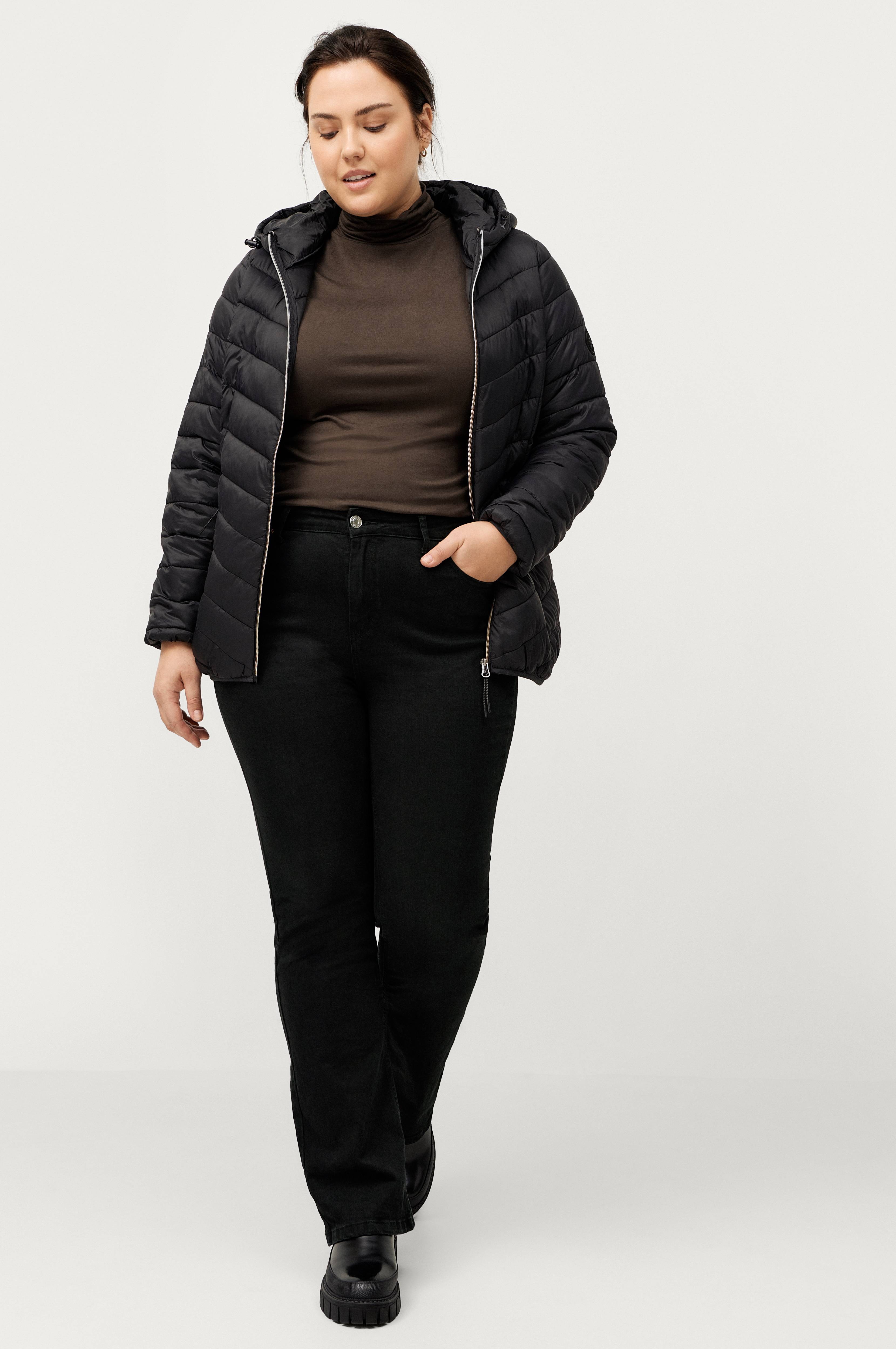 • Store størrelser• Letvægtsjakke med polstring• Lynlås foran• To lynlåslommer• Elastisk kantbånd ved manchetterne og nederst• Hætte med træksnørre• Længde: 72 cm i størrelse S