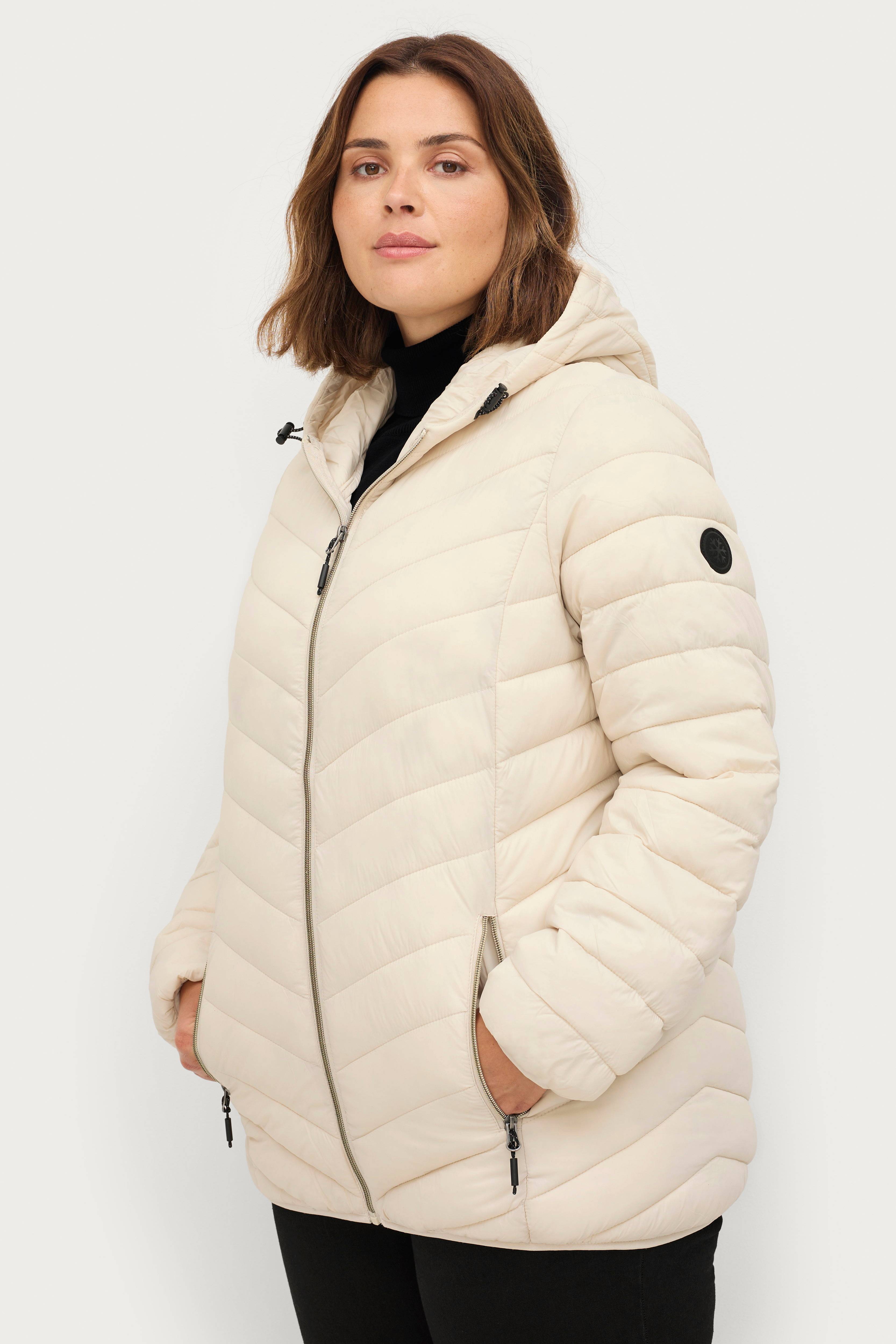 • Store størrelser• Letvægtsjakke med polstring• Lynlås foran• To lynlåslommer• Elastisk kantbånd ved manchetterne og nederst• Hætte med træksnørre• Længde: 72 cm i størrelse S