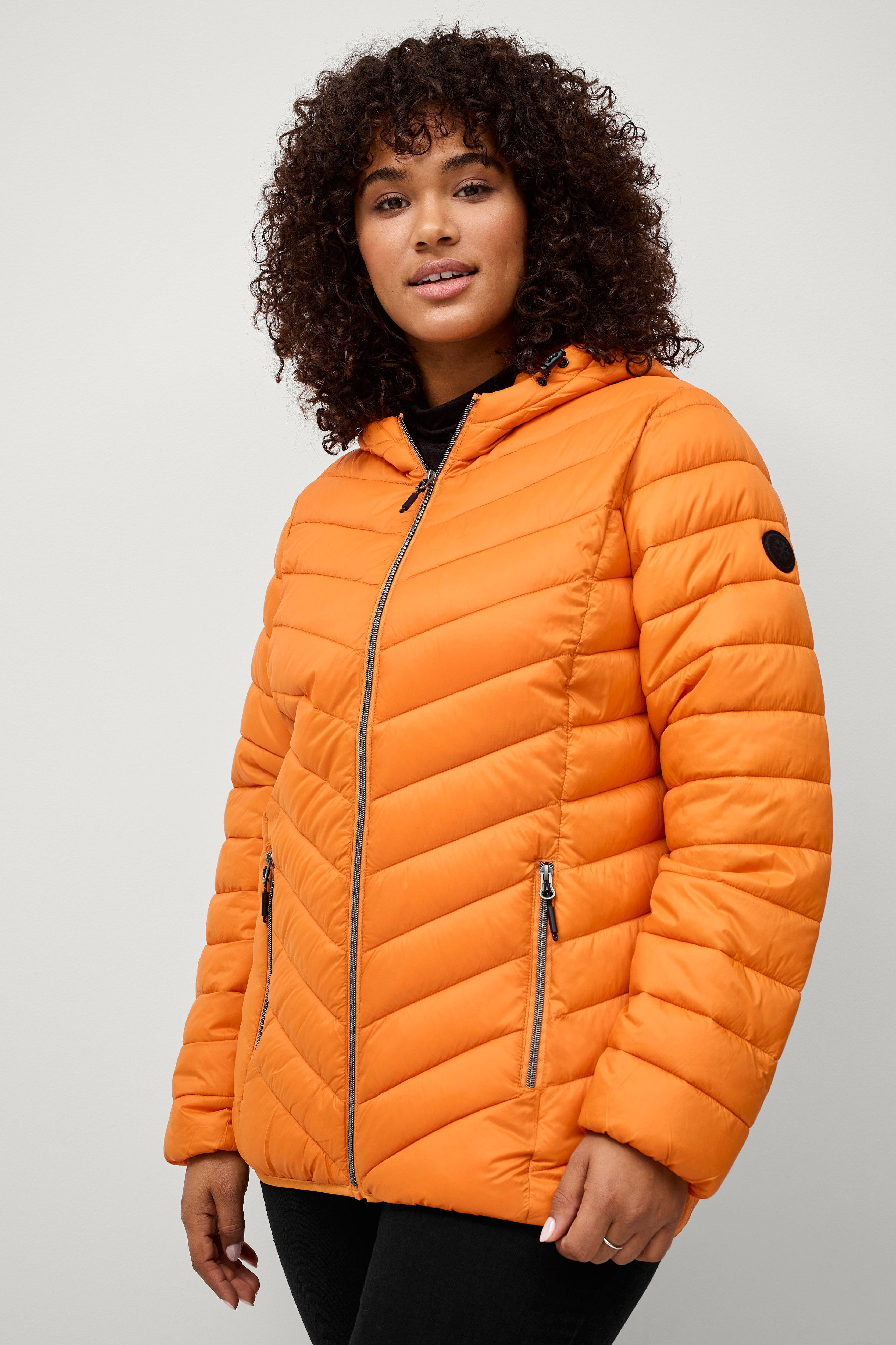 • Store størrelser• Letvægtsjakke med polstring• Lynlås foran• To lynlåslommer• Elastisk kantbånd ved manchetterne og nederst• Hætte med træksnørre• Længde: 72 cm i størrelse S