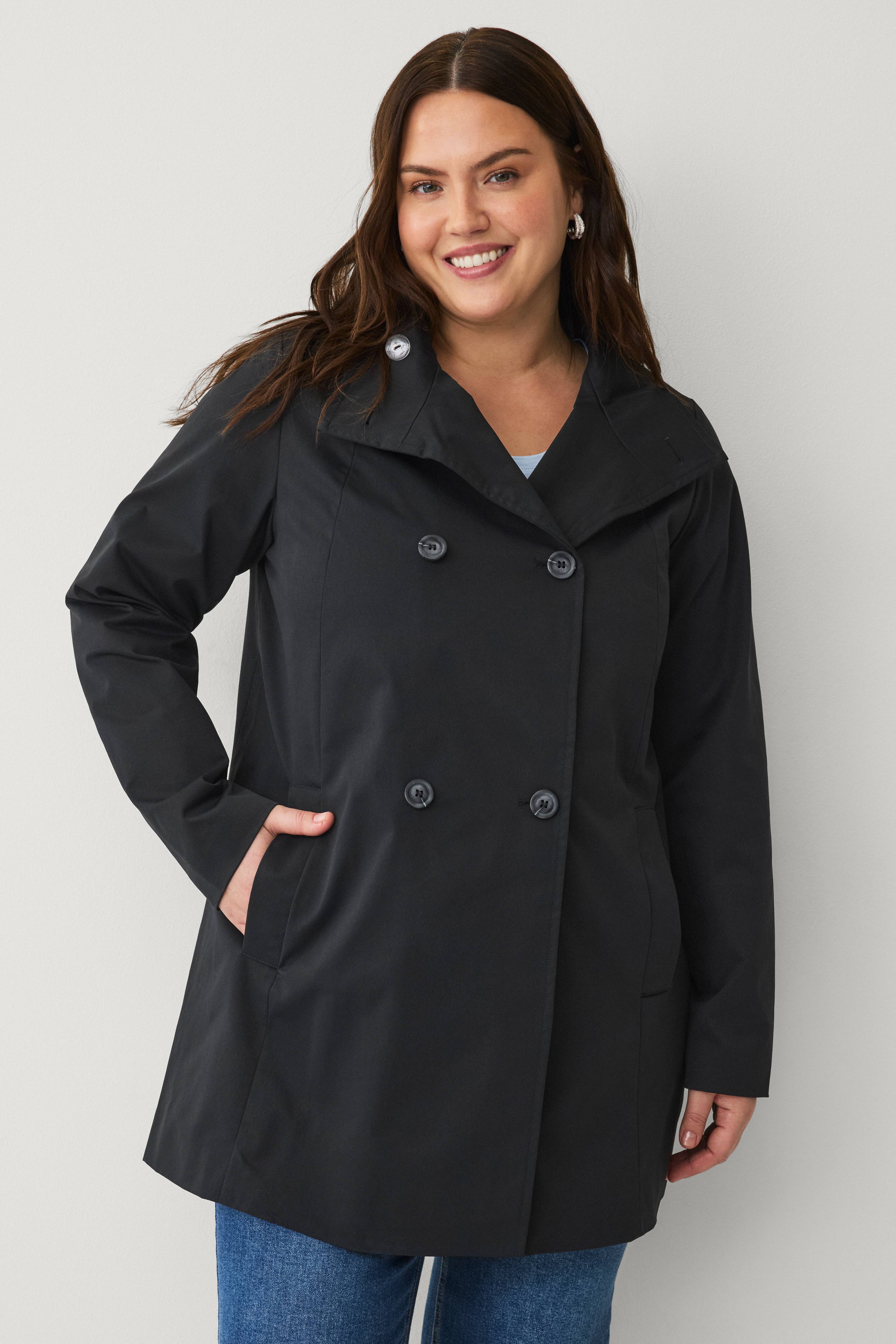 Pæn model, A-formet, smart jakke, jeg holder kraven åben og bruger normalt et tørklæde, så jeg flyttede den øverste knap, så de er på samme sted på begge sider, når kraven er foldet til sid…
