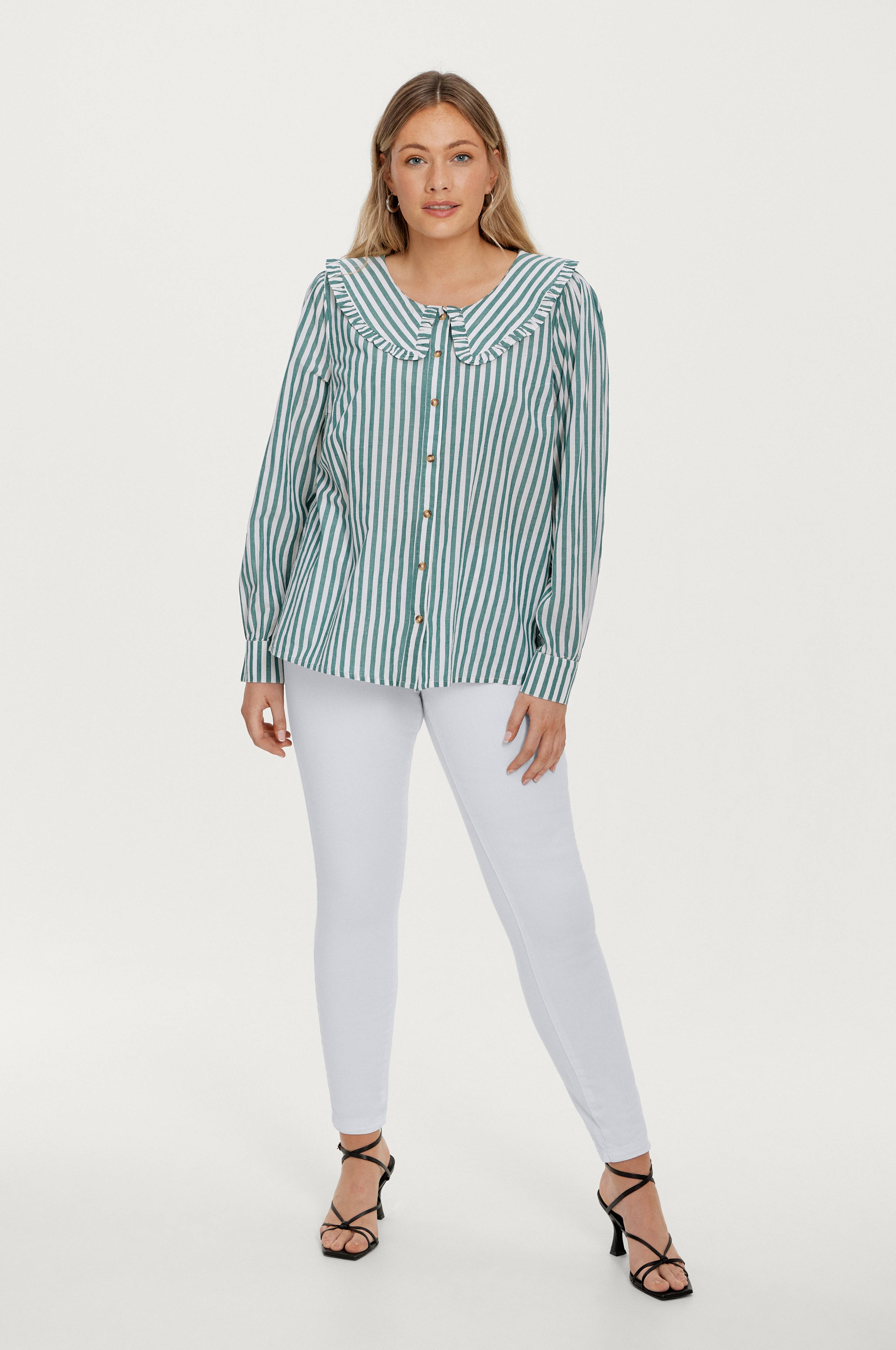 Jeg tog stl 50, normalt er jeg måske 52. Perfekt med stretch og fantastisk!