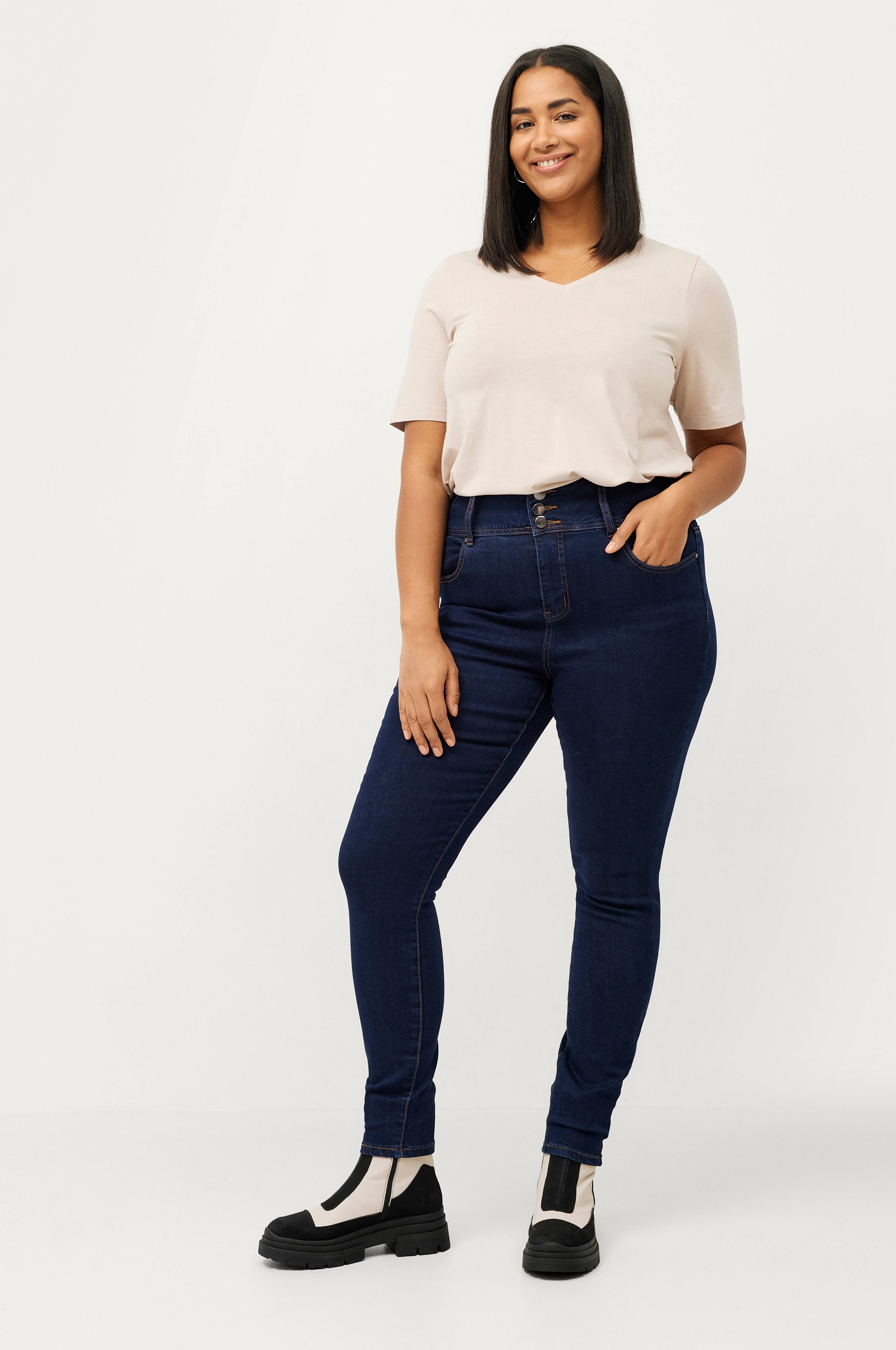 • Supersmal pasform• Ekstra høj talje• To lommer foran• To baglommer• Lukning med tre knapper• Gylp med lynlås