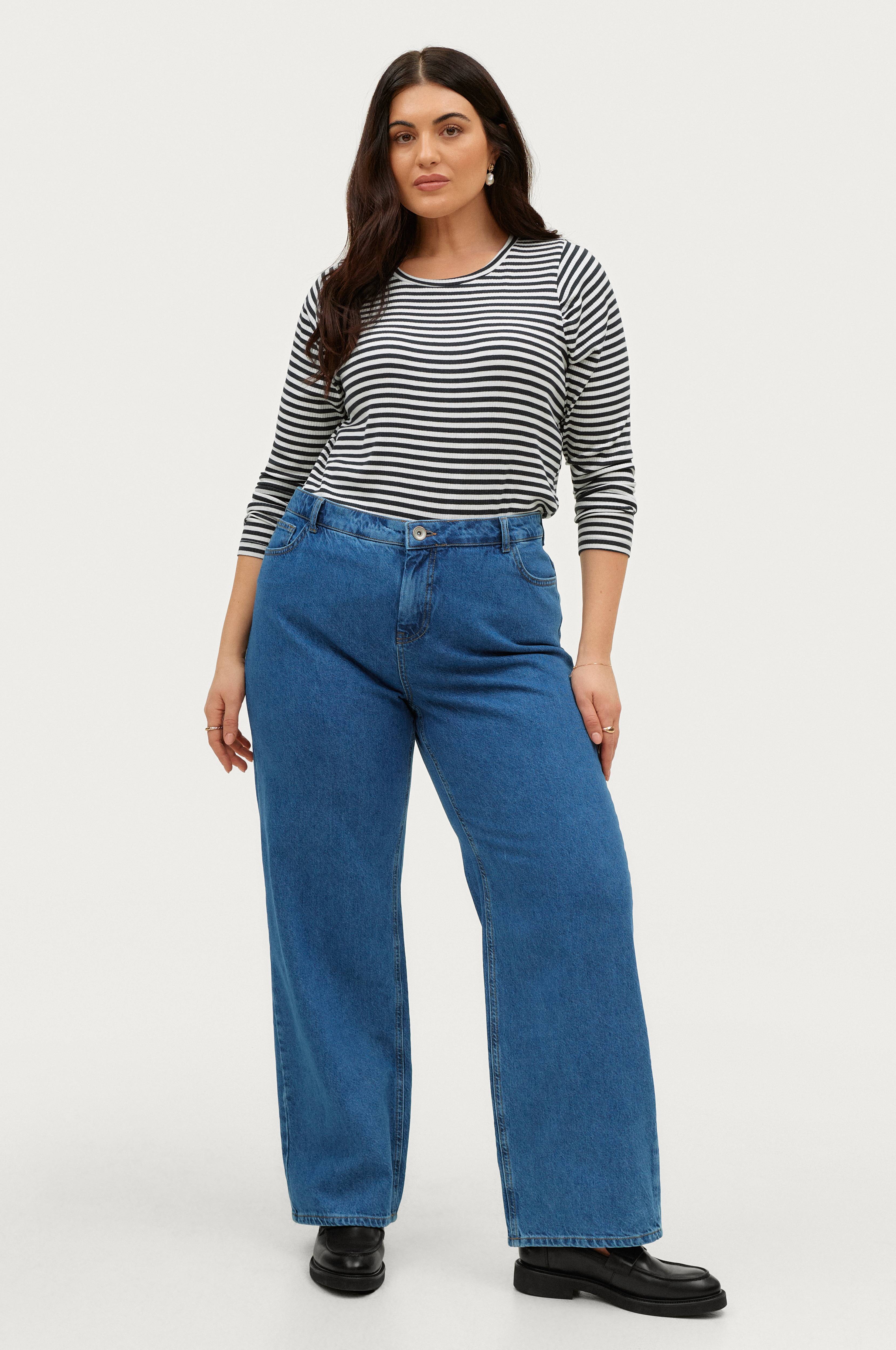 • Brede, lige ben• Fem lommer• Lynlås• Fremstillet af denim• Store størrelser