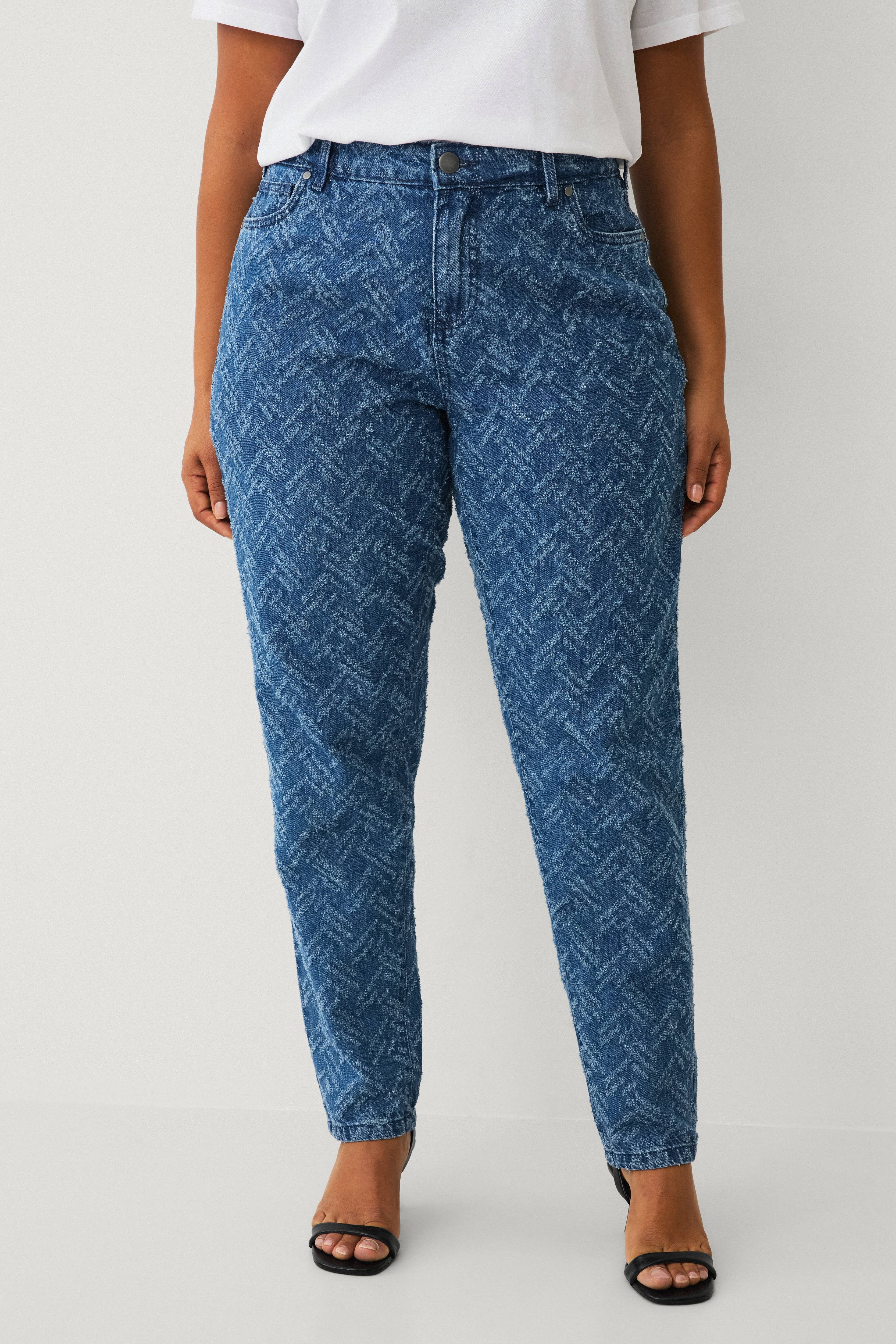 • Jeans med dekorative tråde• Femlommemodel• Bælteløkker• Lynlås- og knaplukning• Plusstørrelser• Indre benlængde: 76 cm i størrelse 44