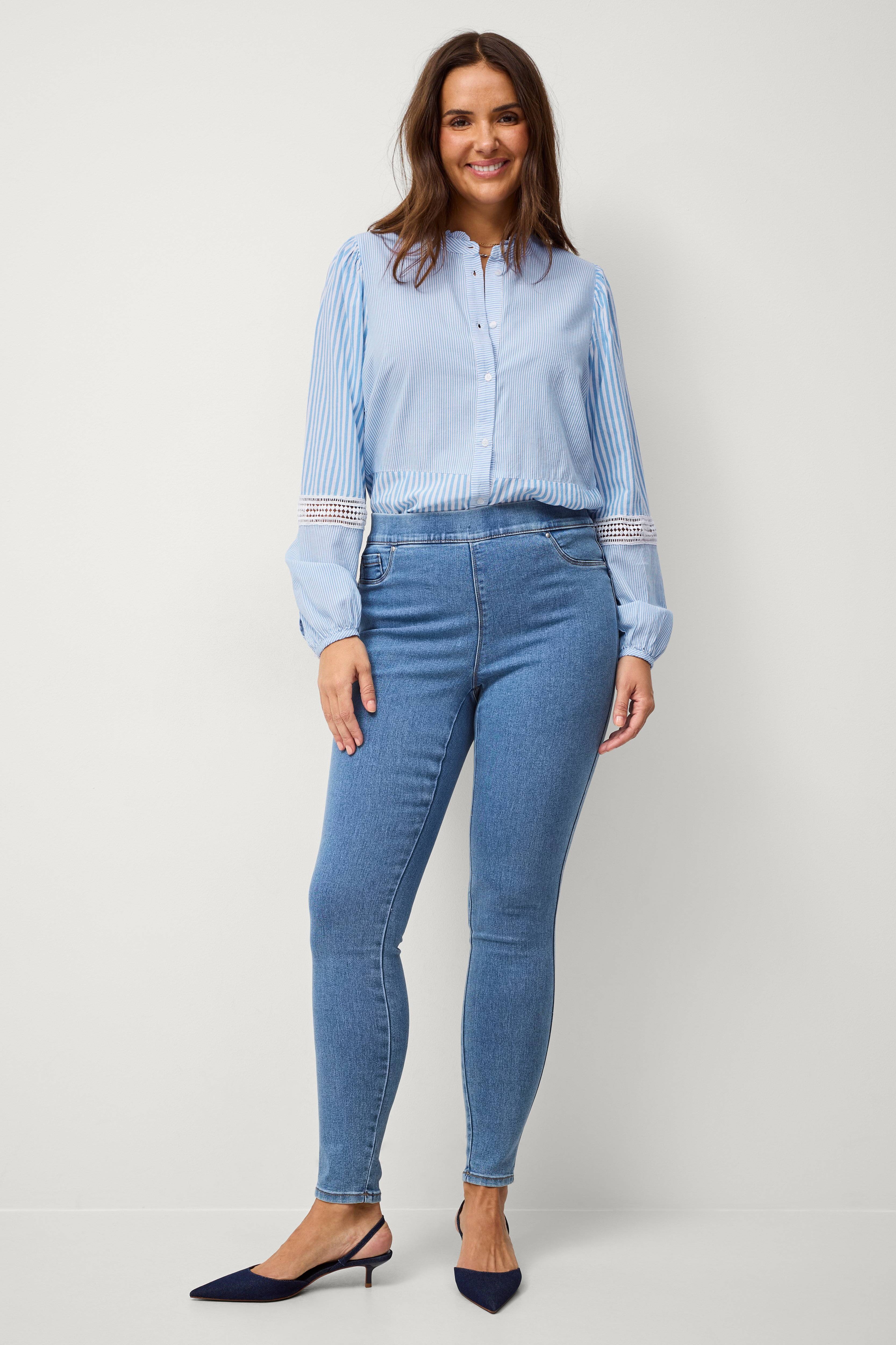 Gode jeans med en ret høj talje. Ikke så kraftige og meget elastiske. Købte min sædvanlige størrelse.