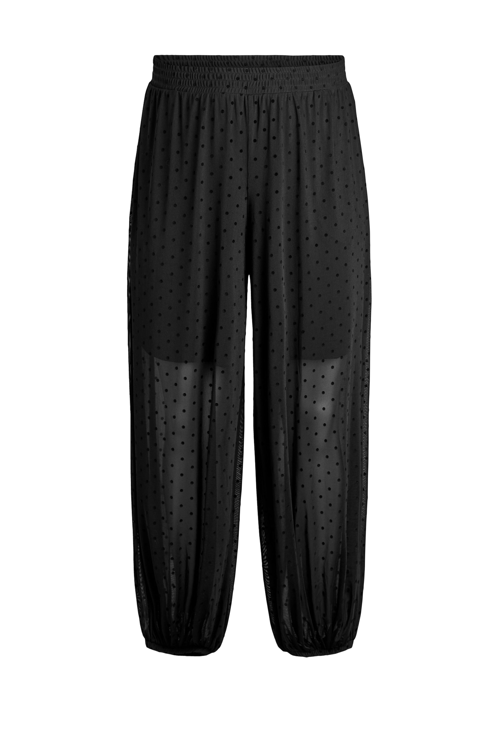 • Transparente ballonbukser med prikmønster• Bred elastik ved taljen• Kort for i jersey• Sidelommer• Elastik ved enden af benene• Plusstørrelser• Indre benlængde: 75 cm i størrelse S