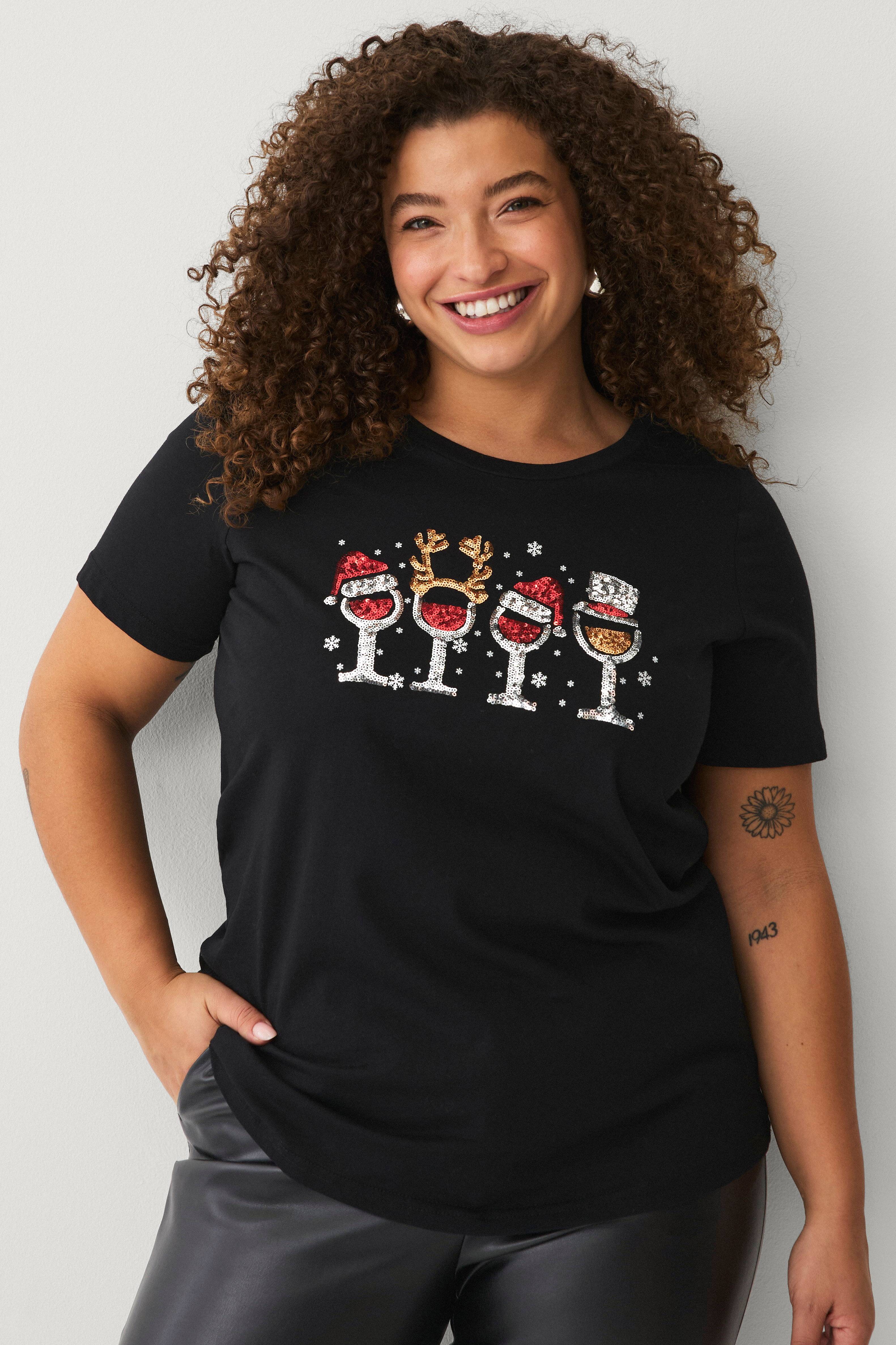 • T-shirt i bomuld• Julemotiv med pailletter foran• Rund hals• Store størrelser