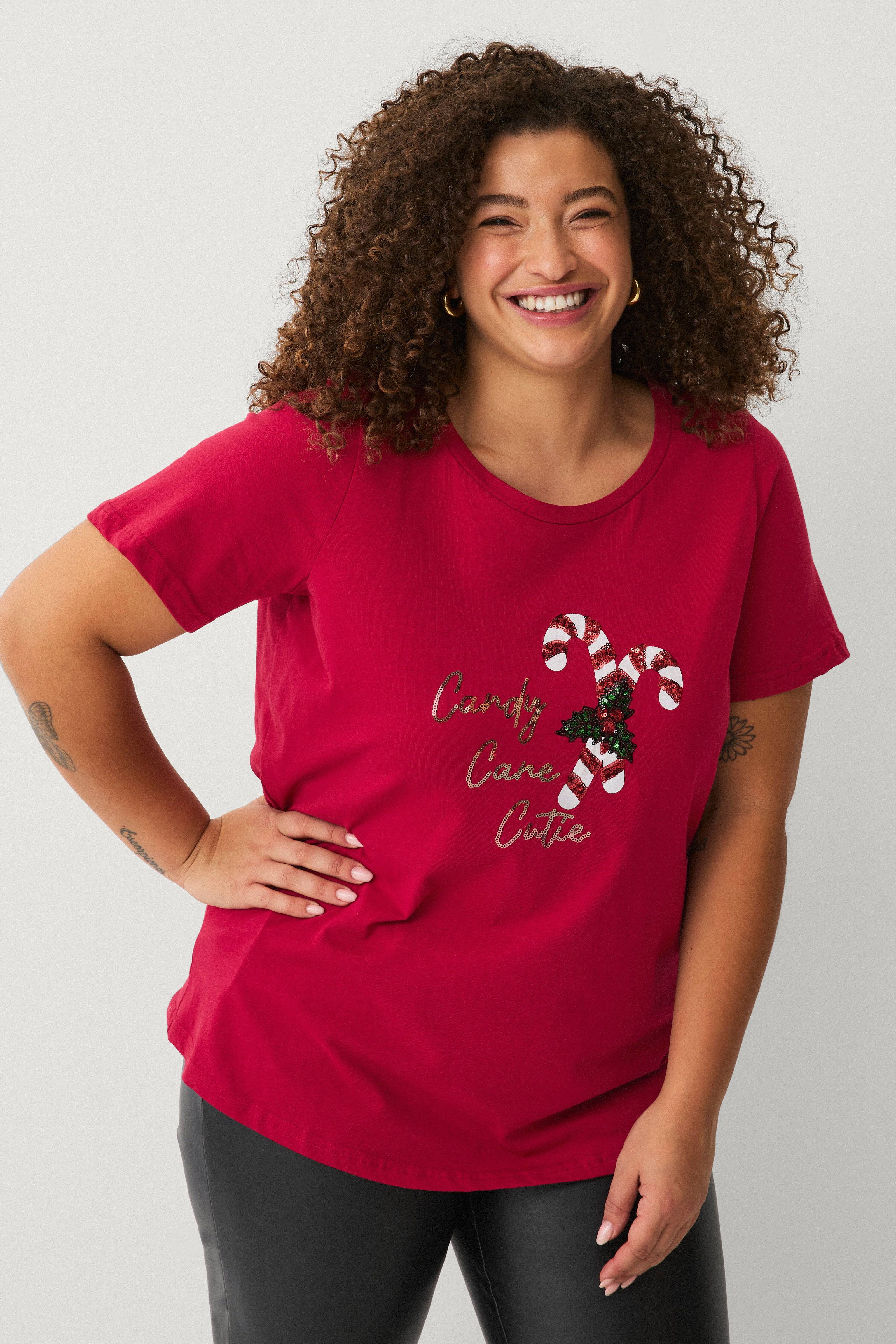 • T-shirt i bomuld• Julemotiv med pailletter foran• Rund hals• Store størrelser