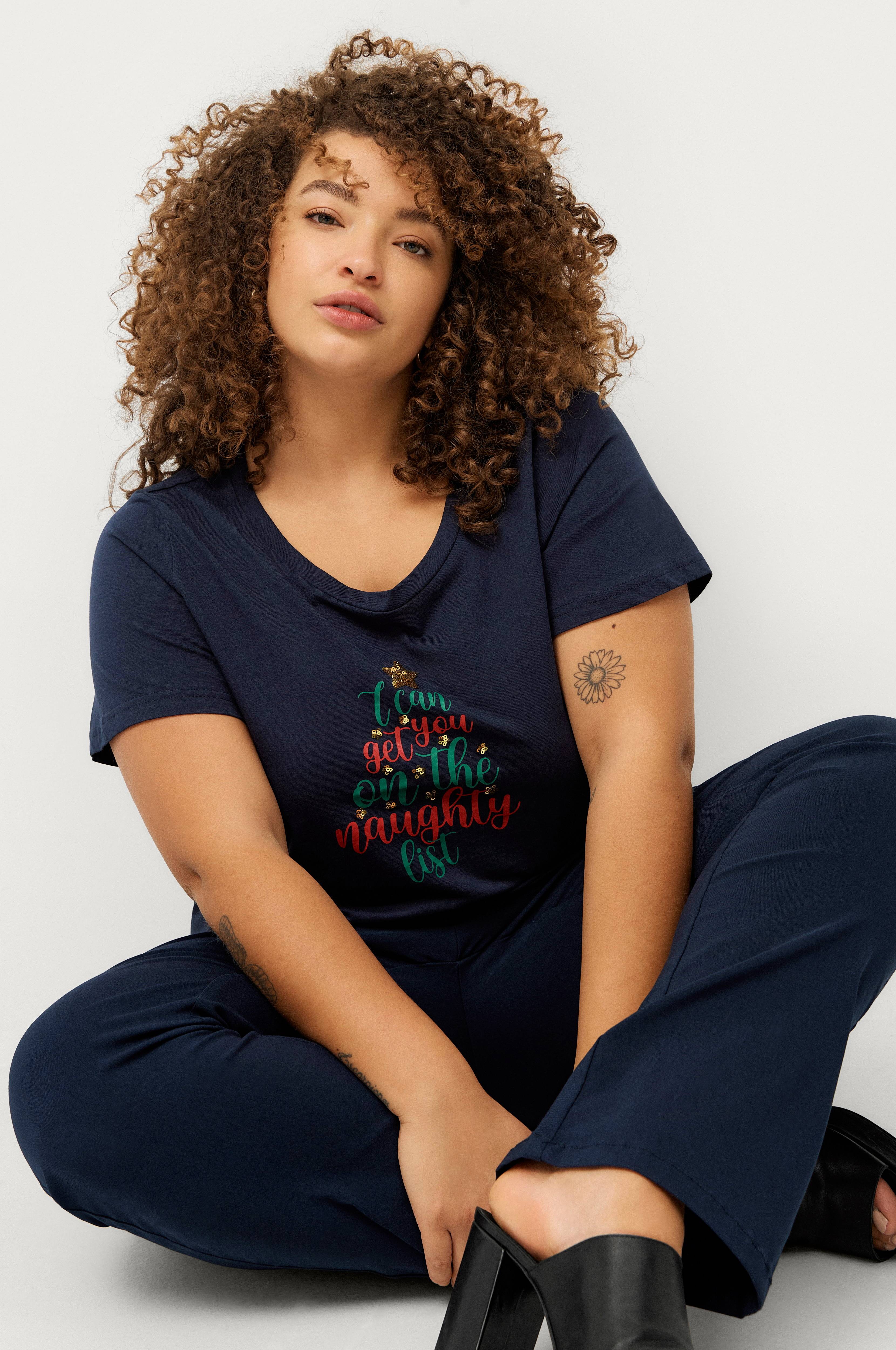 • Top med pailletter foran • Rund halsudskæring • Store størrelser • Produktet indeholder økologisk bomuld, som er dyrket uden kemiske sprøjtemidler, kunstgødning og genmodificerede afgrøder (GMO). Dette betyder et sundere arbejdsmiljø for landmænd og bedre jord.