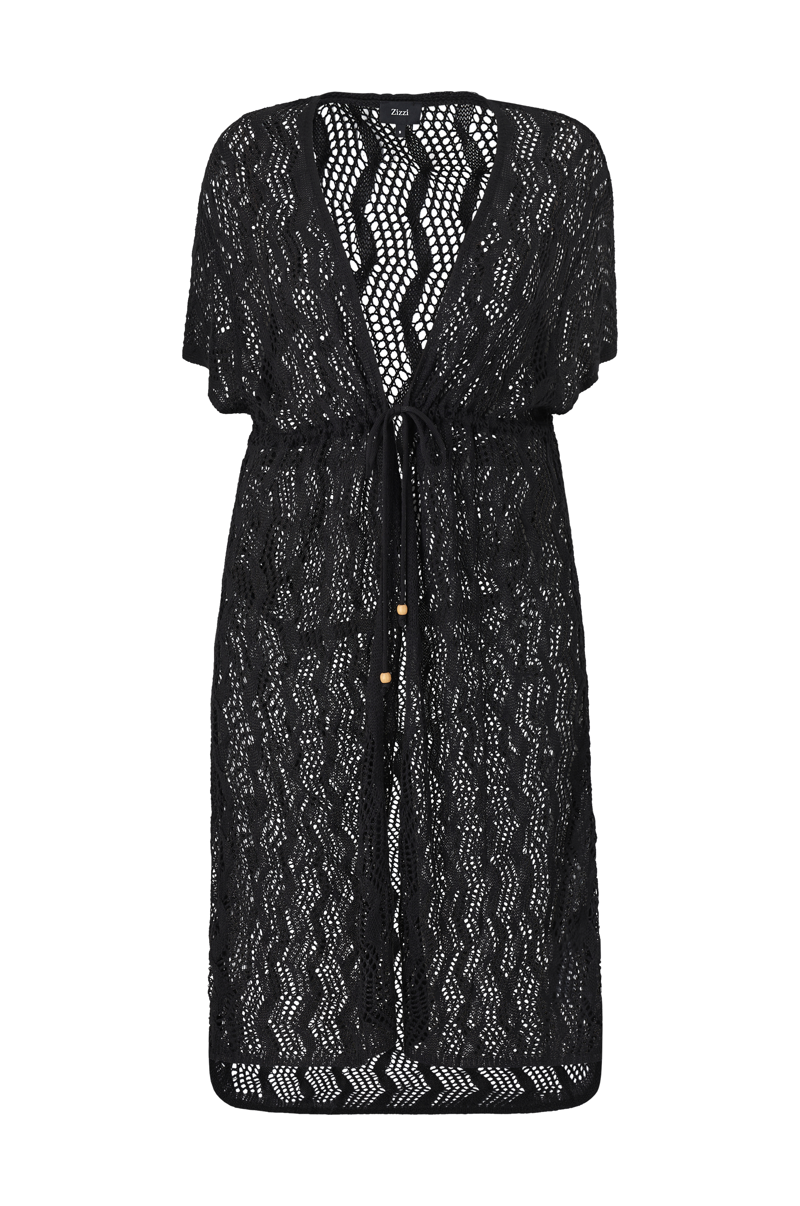 • Strandkimono med let, luftigt hulmønster• Korte ærmer med løs pasform• Åben, uden knaplukning model• Tyndt bindebælte ved taljen• Store størrelser• Længde: 114 cm i størrelse S