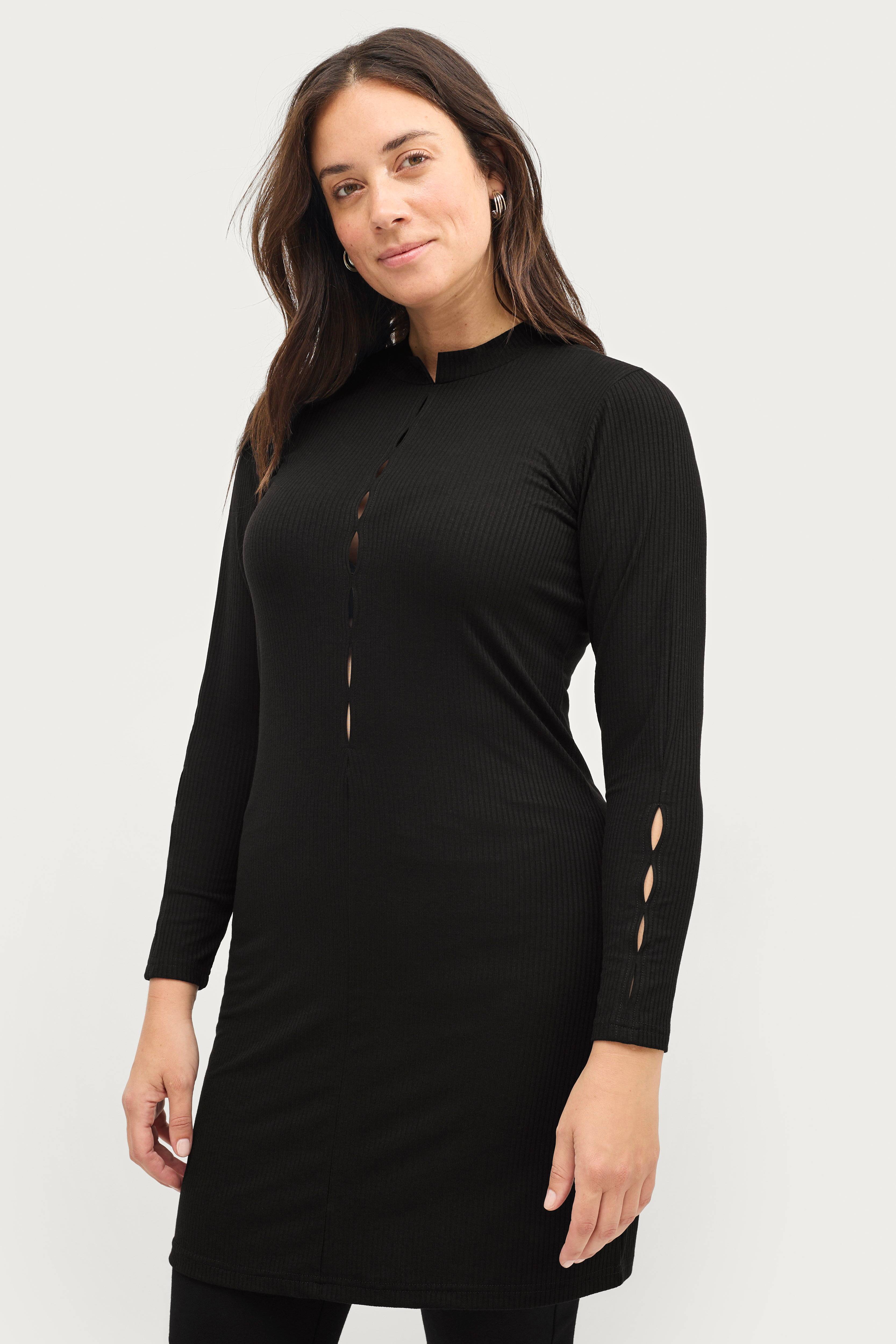 • Store størrelser• Model med svaj i jersey• Opretstående krave• Små, dekorative huller på brystet• Langt ærme• Længde: 92 cm i størrelse S