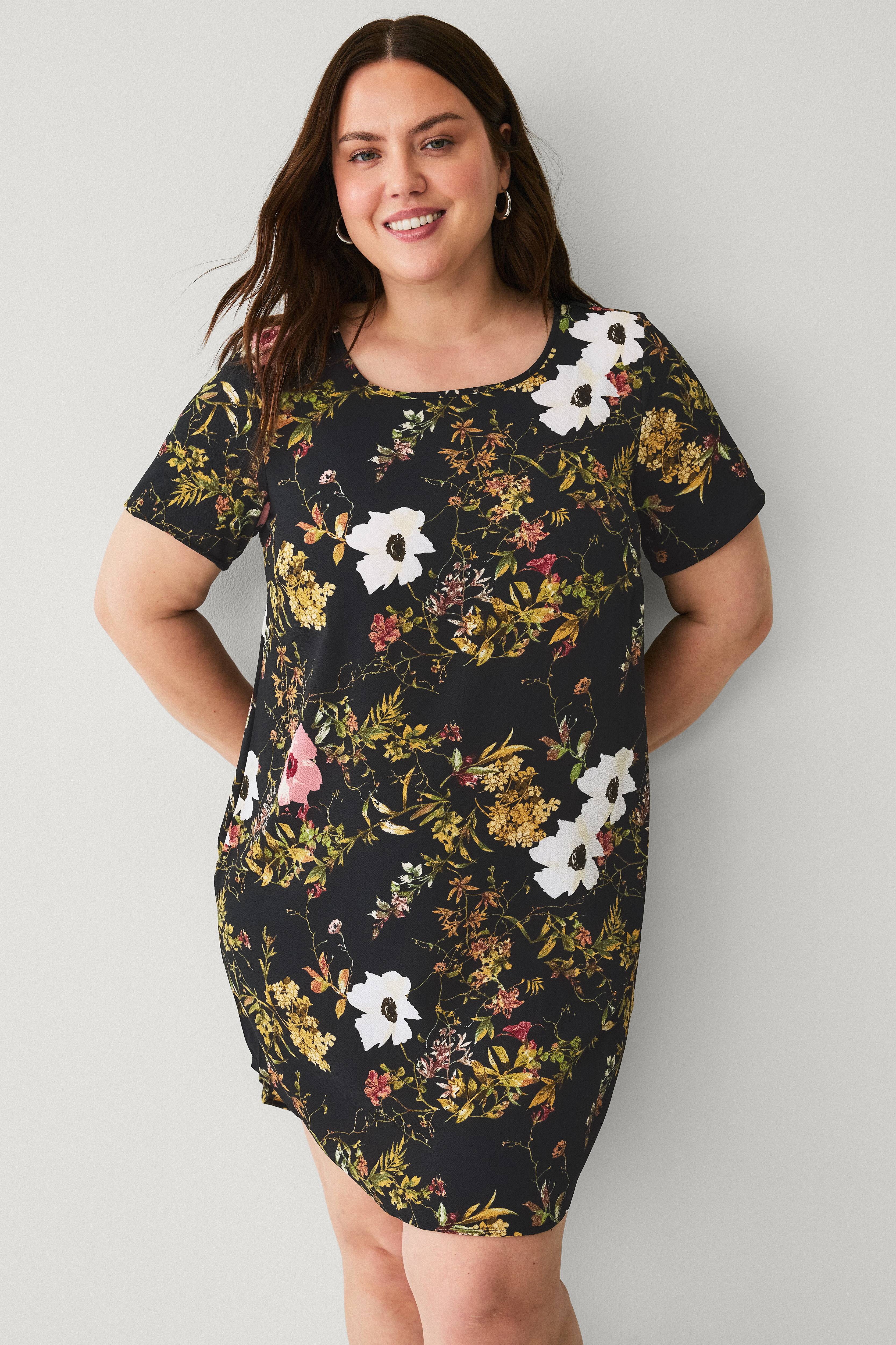 • Løs pasform • Let, elastisk kvalitet • Rund halsudskæring • Kort ærme • Store størrelser • Længde: 102 cm i størrelse S • Produktet indeholder genindvundet materiale, som genbruges for at reducere mængden af affald samtidigt med at der ikke anvendes nye ressourcer.