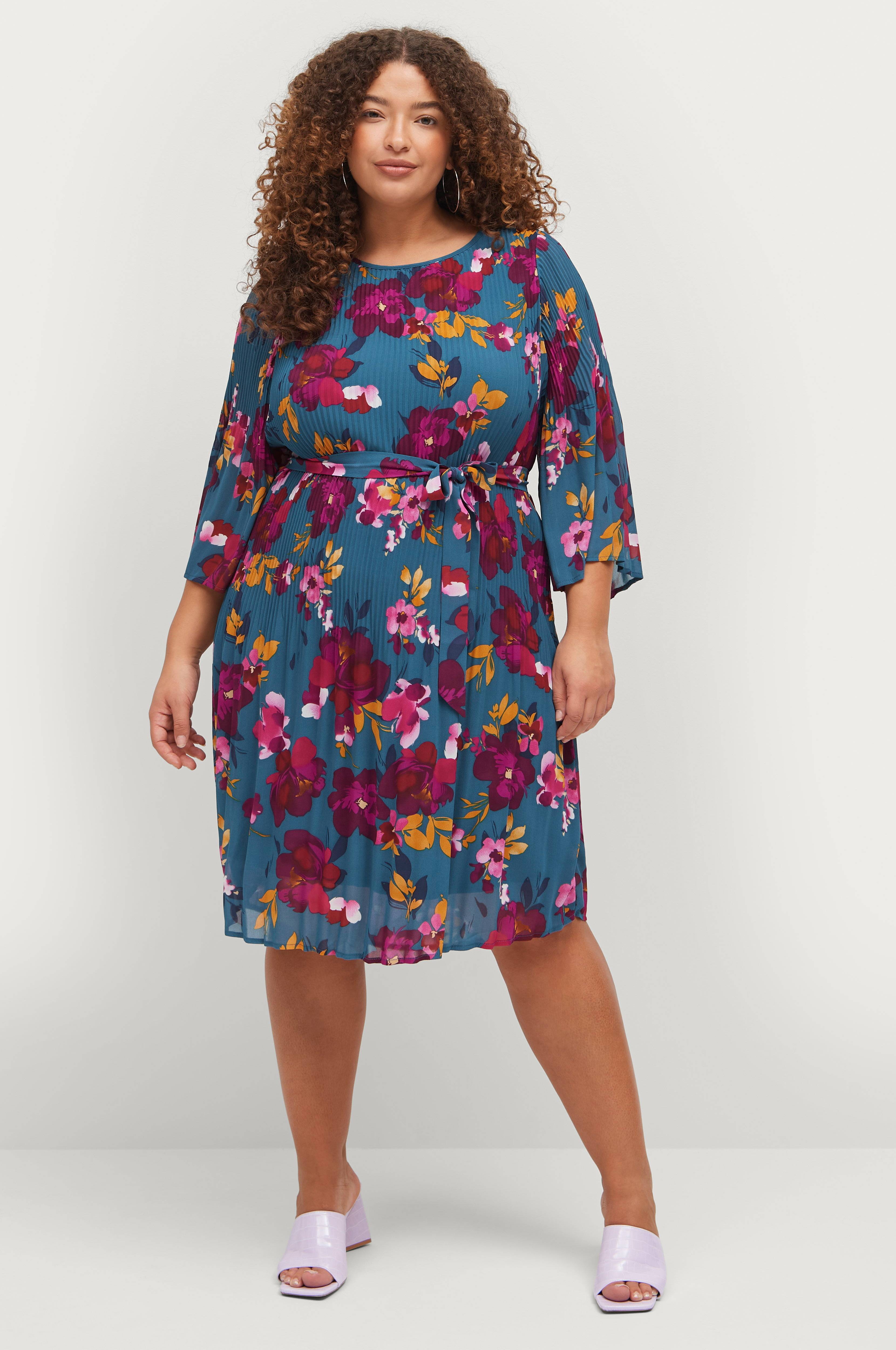 • Model med svaj i chiffon med tyndt omvendt bokslæg på toppen • Aftageligt bæltespænde • Rund hals med knap i nakken • 3/4 langt, bredt ærme med svaj • Trikotfor • Længde: 106 cm i størrelse S
