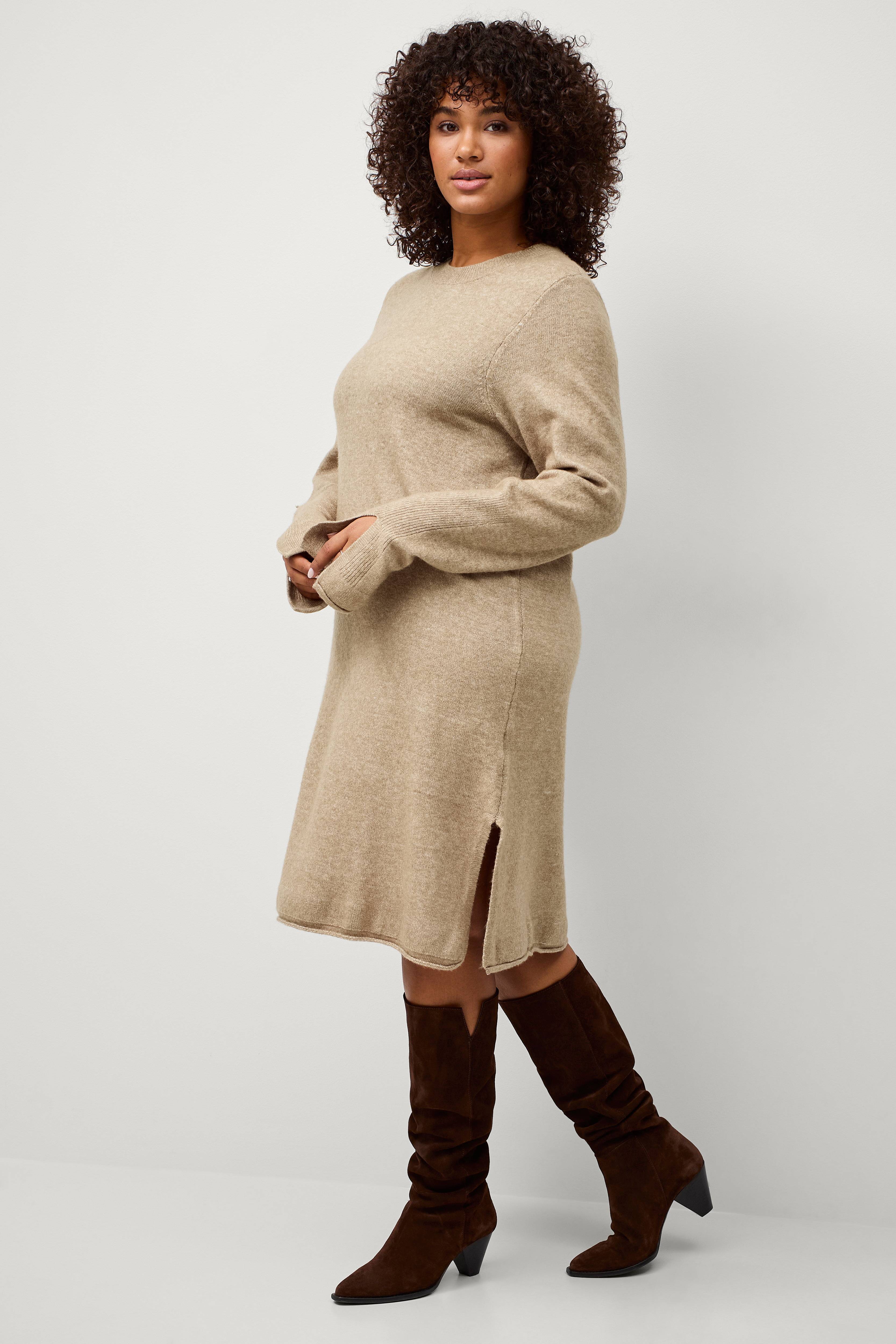 • Store størrelser• Lige, fintstrikket model• Rund hals med ribkant• Ekstra langt ærme med slids ved ærmeafslutningerne• Slids nede i siderne• Længde: 98 cm i størrelse S