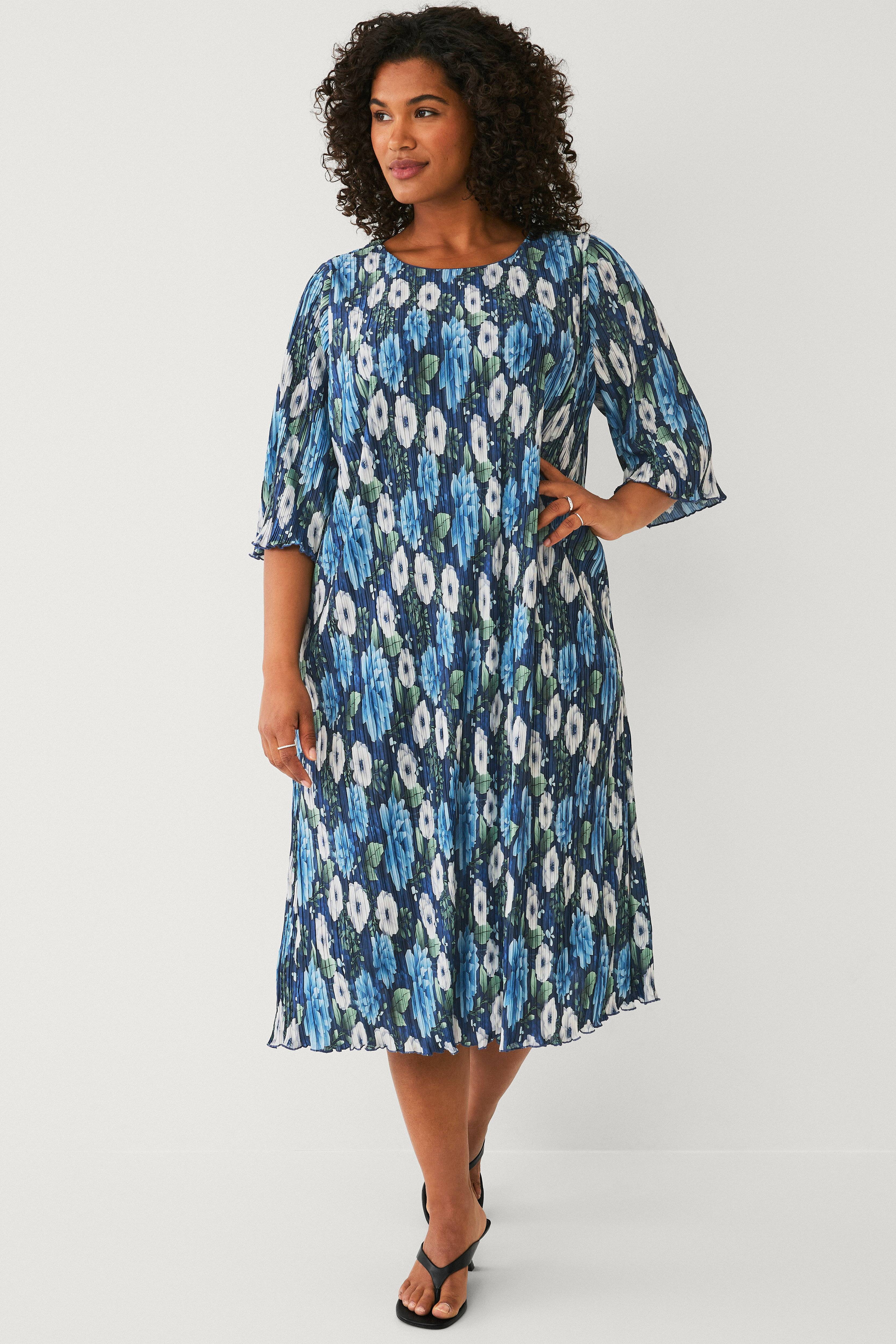 • Store størrelser• Plisseret model med svaj• Rund hals med knap i nakken• Bredt ærme med svaj• Bølgede kanter• Længde: 118 cm i størrelse S