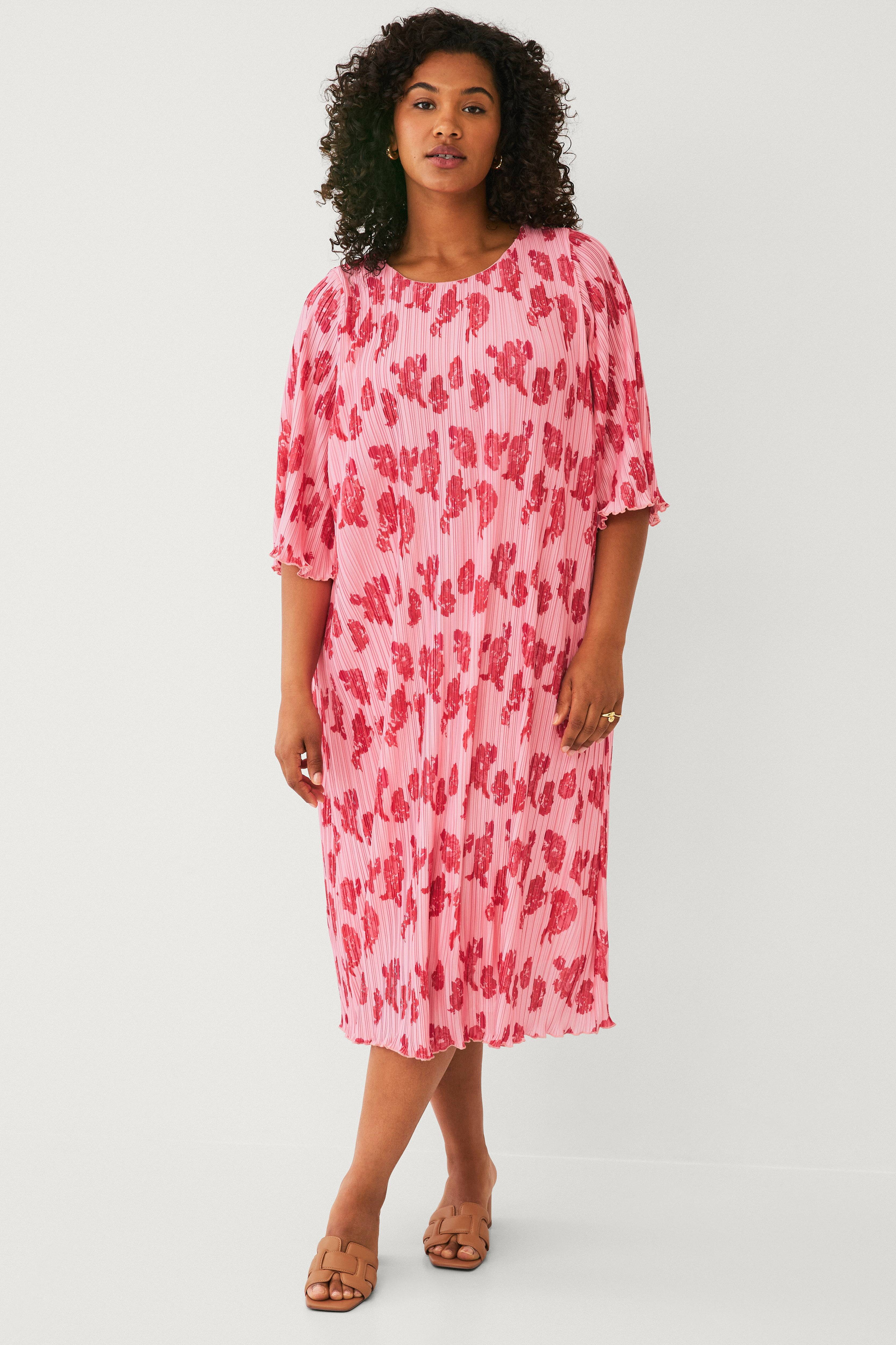 • Store størrelser• Plisseret model med svaj• Rund hals med knap i nakken• Bredt ærme med svaj• Bølgede kanter• Længde: 118 cm i størrelse S