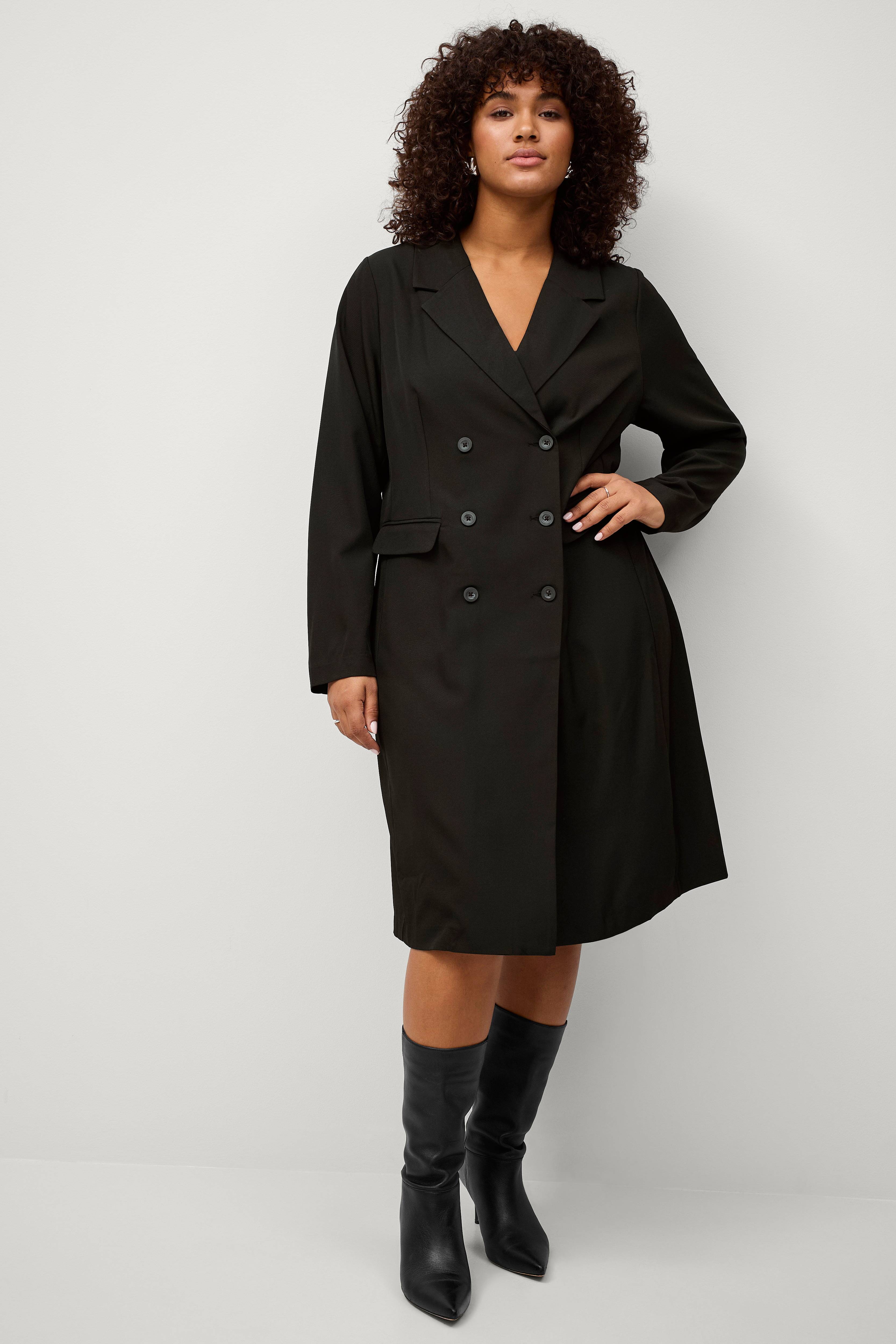 • Store størrelser • Jakke-model med stor krave og revers • Dobbelt knaplukning • Paspolerede lommer med låg • Langt ærme • Længde: 106 cm i størrelse S