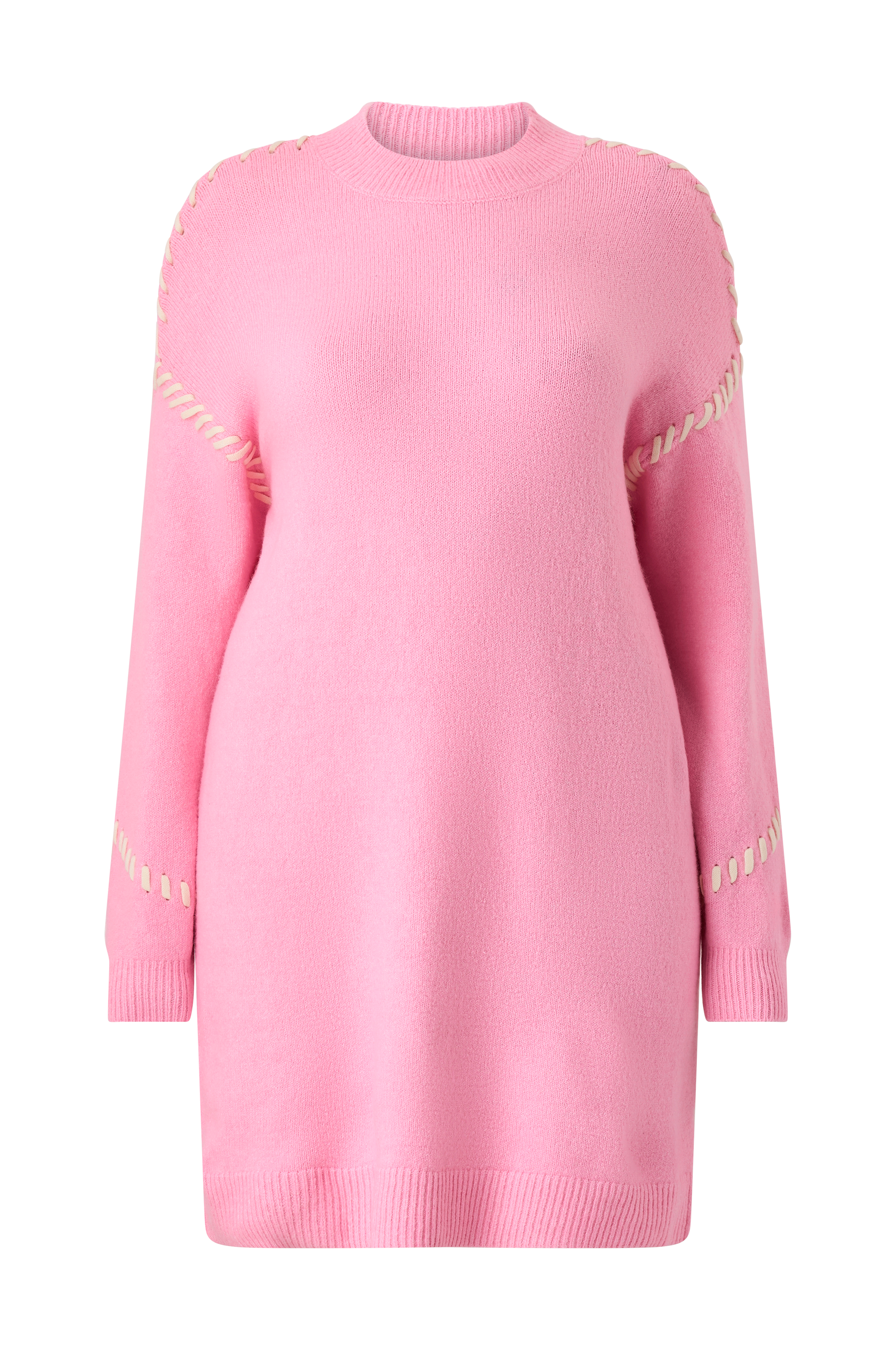 • Blød, strikket kjole• Rund, ribbet halsudskæring• Dekorative, kontrastfarvede syninger• Ribmanchet ved manchetterne• Ribstrik ved nederste kant• Længde: 99 cm i størrelse S• Plusstørrelser