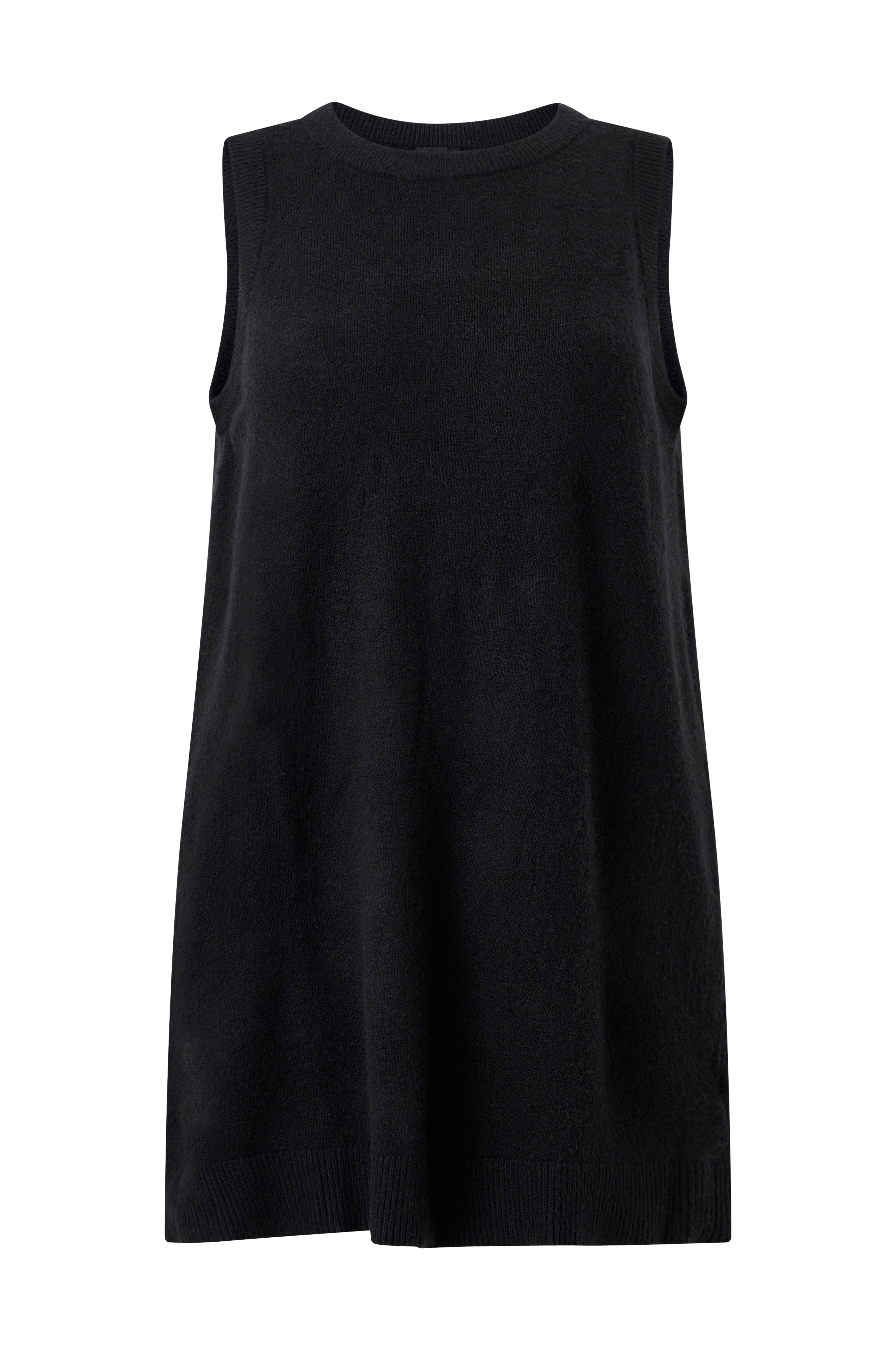 • Blød, strikket kjole• Rund halsudskæring• Ærmeløst design• Ribbede detaljer• Plusstørrelser• Længde: 94 cm i størrelse S
