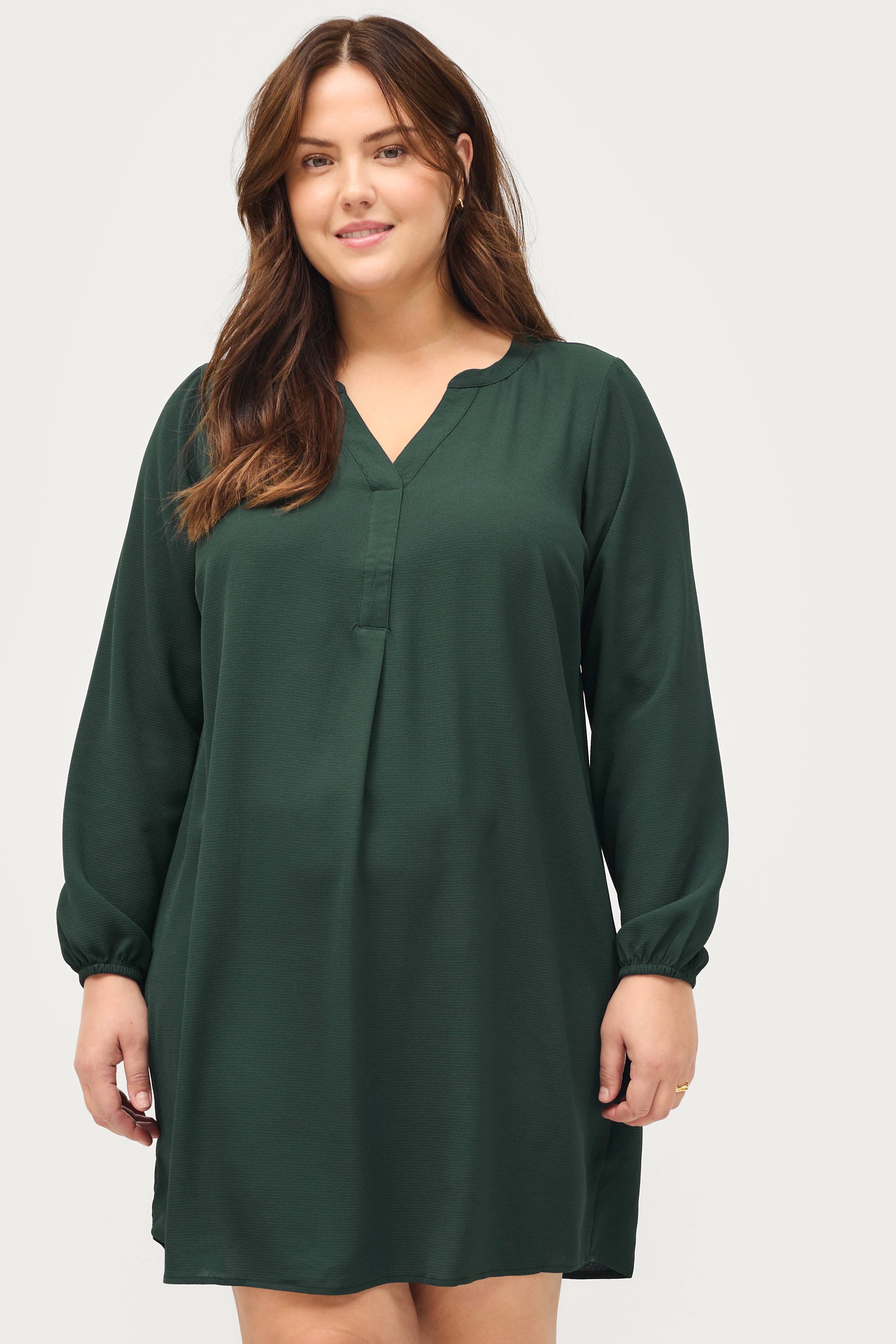 • V-udskæring• Elastisk bånd ved manchetterne• Kreppet kvalitet• Store størrelser• Længde: 92 cm i størrelse S