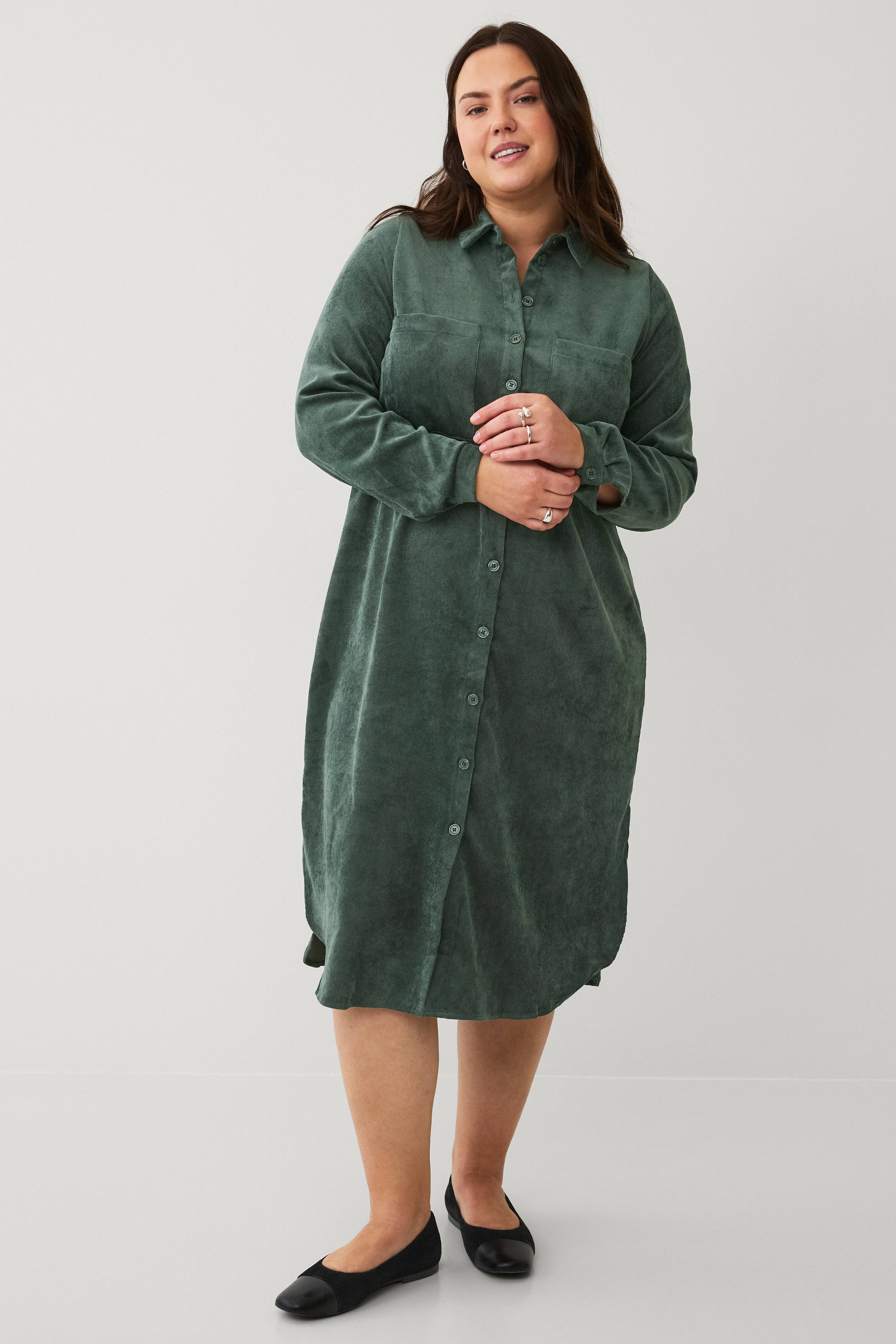 • Lang skjortekjole i kraftig fløjl• Knapstolpe hele vejen frem• Krave• Brystlommer• Lange ærmer med knap ved manchetterne• Slidser i siderne• Store størrelser• Længde: 117 cm i størrelse S