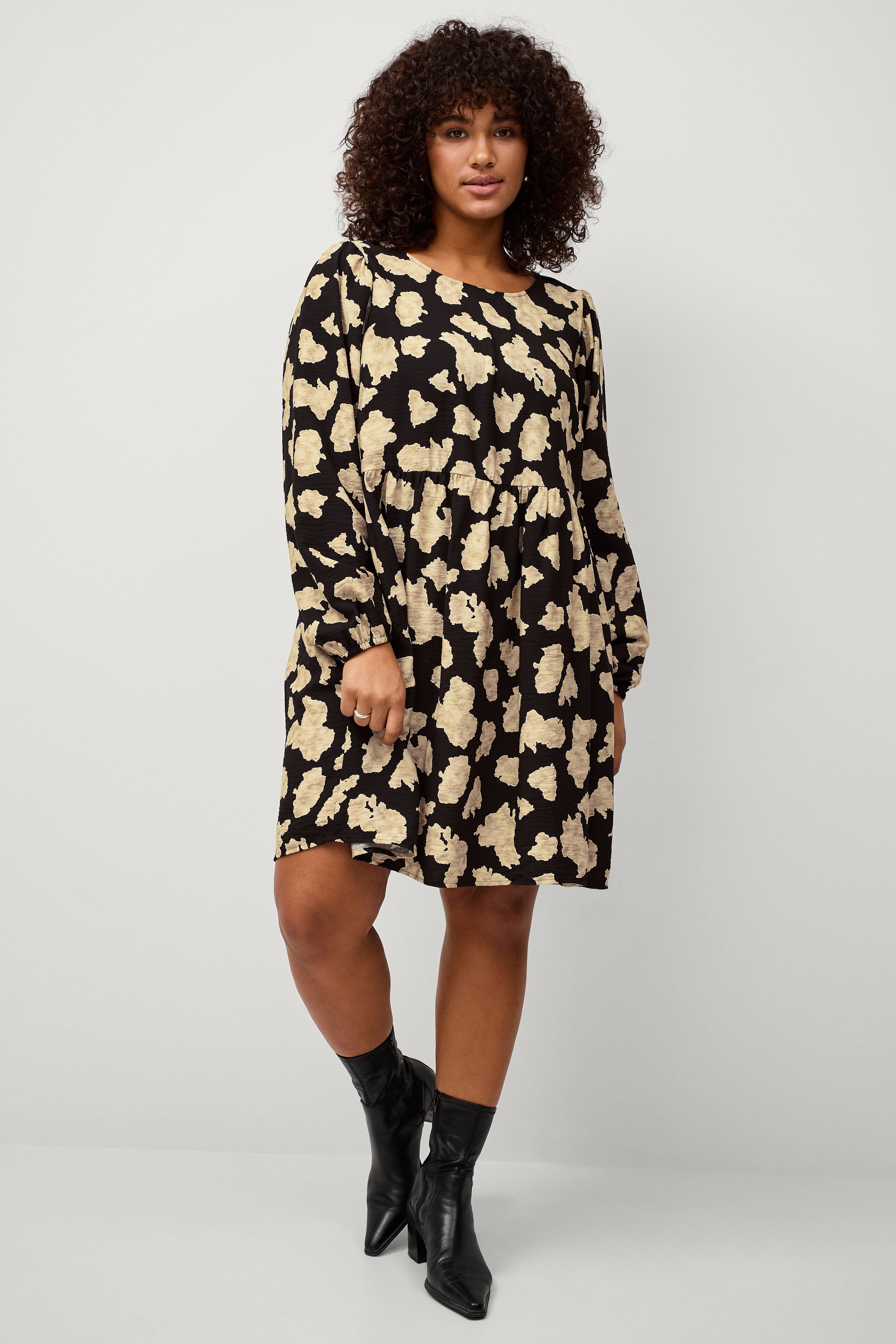 • Store størrelser • Model med svaj • Rund hals • Ventilation med bindebånd i nakken og i ryggen • Langt, bredt ærme med elastik ved manchetterne • Rynket talje • Længde: 94 cm i størrelse S