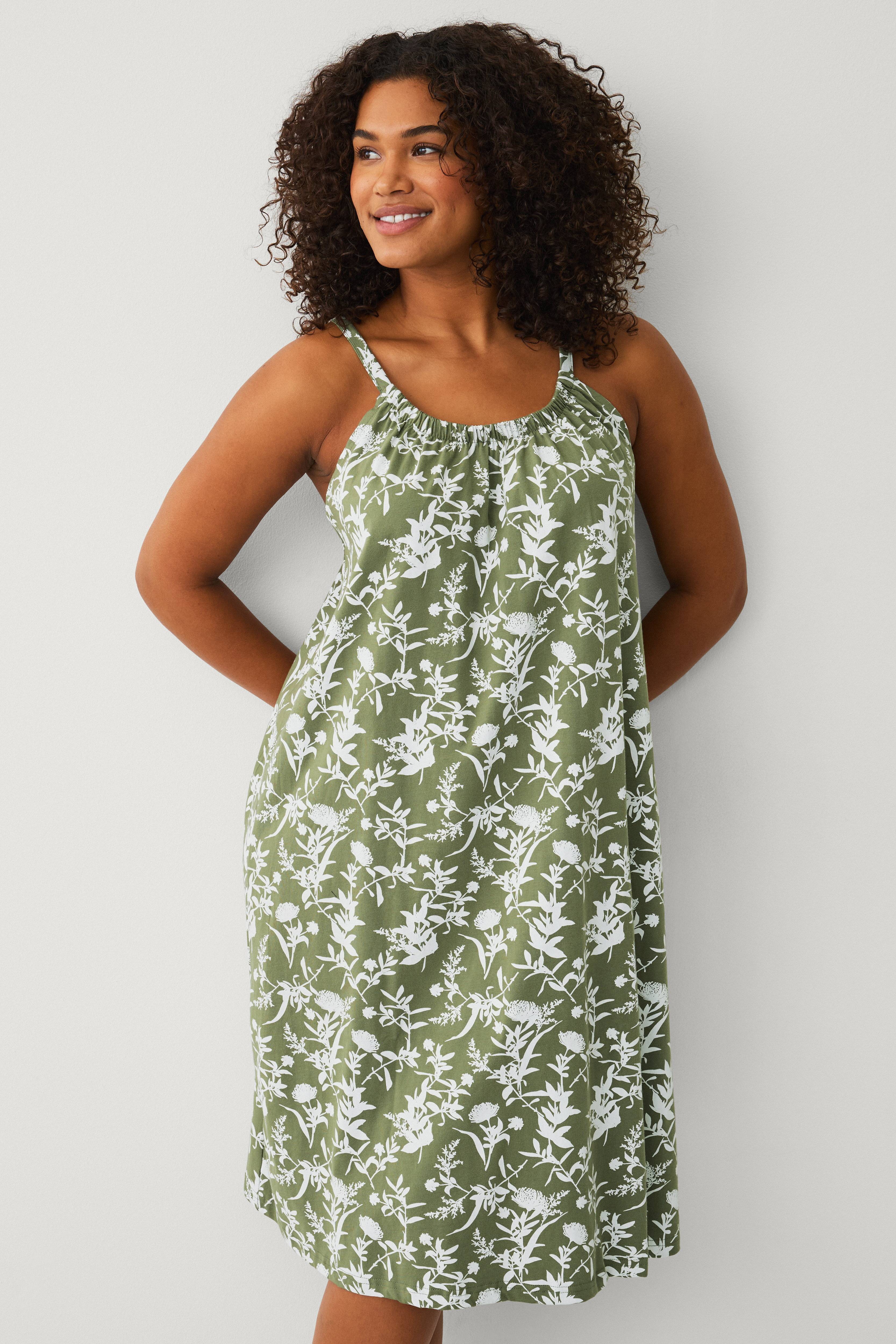 • Kjole i bomuld• Rund halsudskæring• Justérbare skulderstropper• Nedre del med svaj• Plusstørrelser• Længde: 97 cm i størrelse S