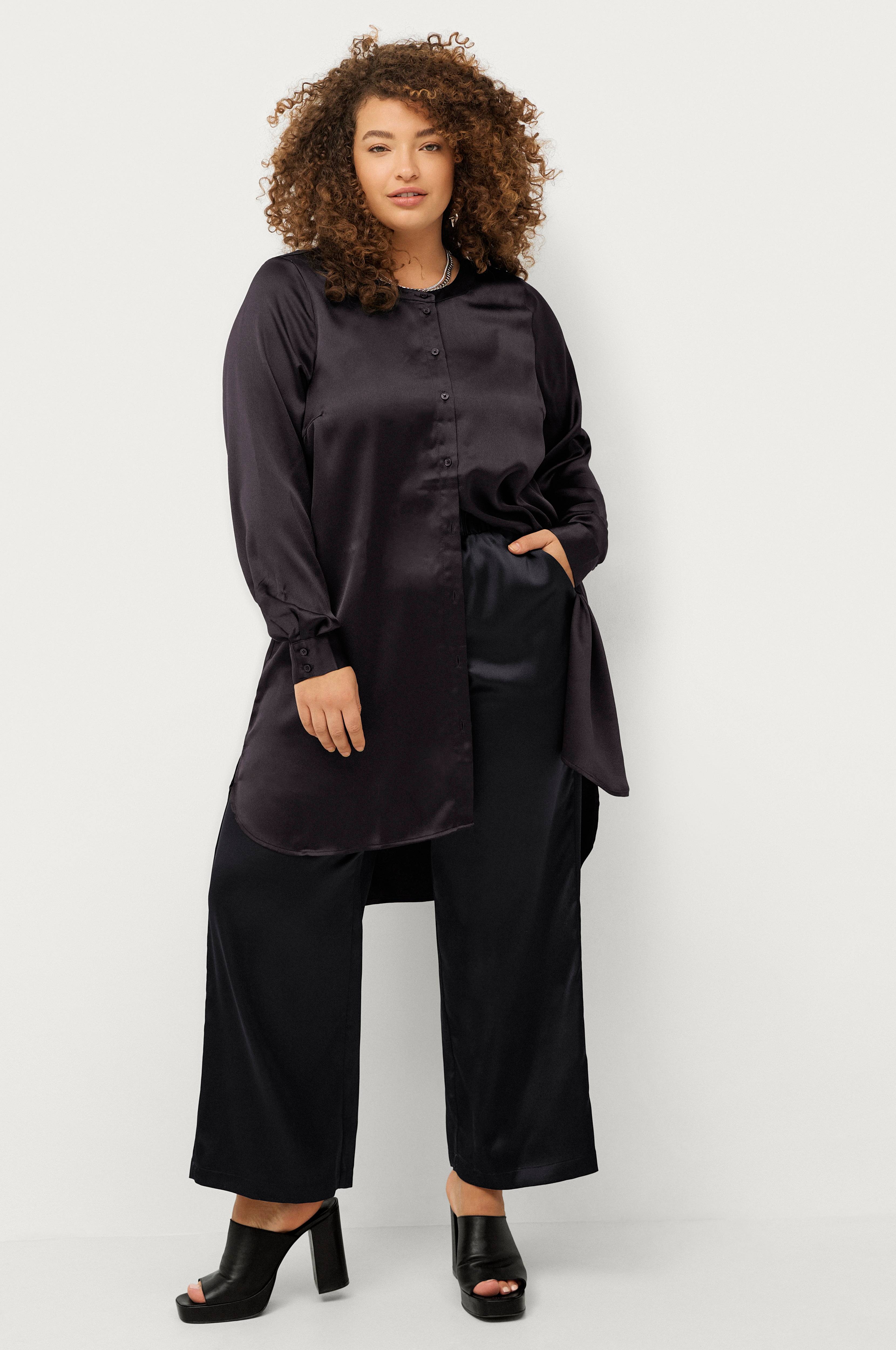 • Store størrelser• Model med svaj i satin• Rund, bred halsudskæring• Knapper hele vejen frem• Langt ærme med manchet• Afrundede ventilationer nede i siderne• Længere bagside• Længde: 99 cm i størrelse S