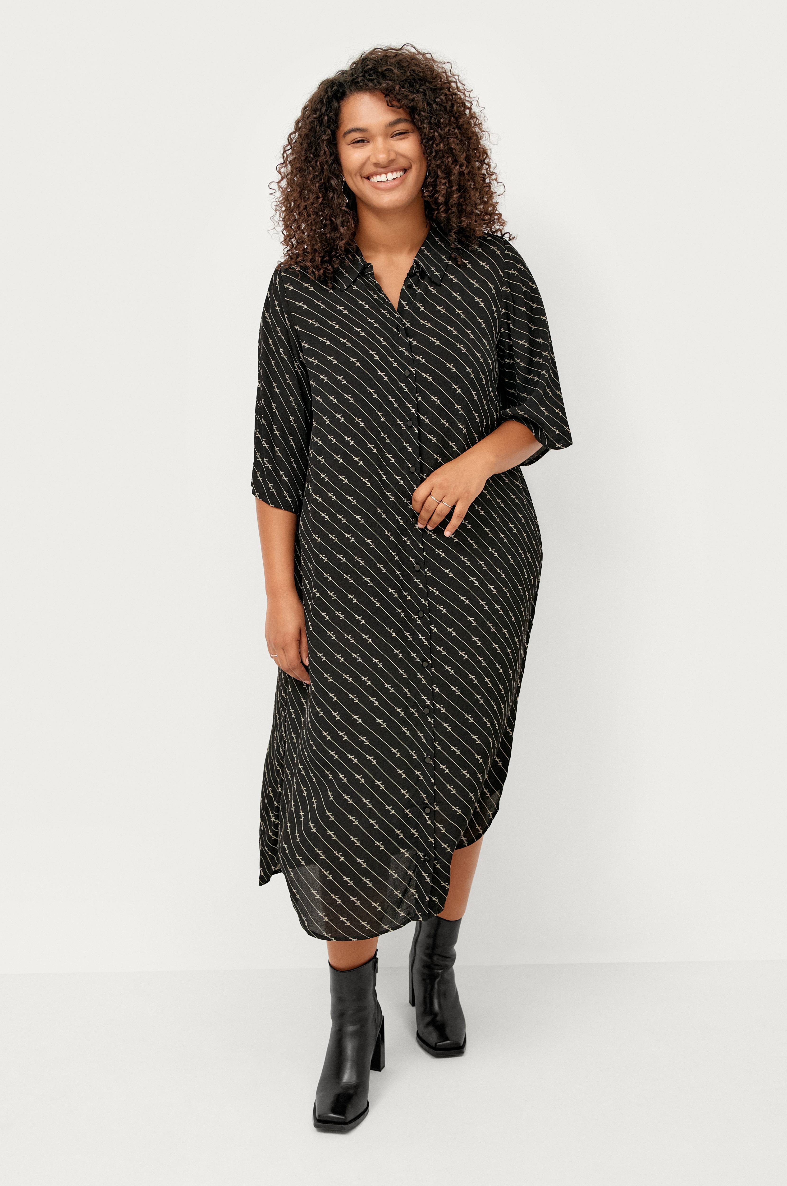 • Store størrelser• Læglængde skjorte• Knapper foran• 3/4 lange, brede ærmer• Kreppet kvalitet