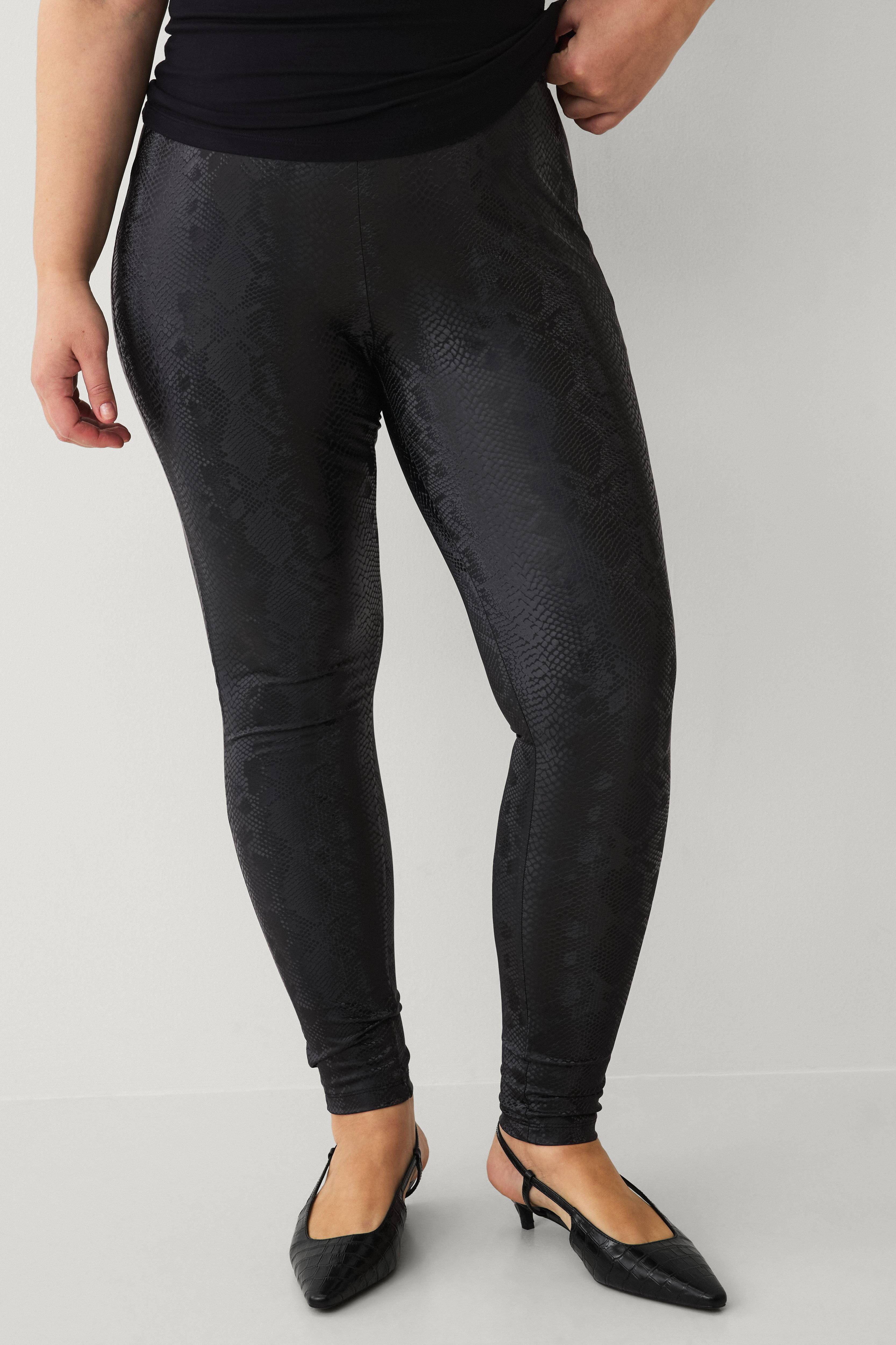 • Leggings med skinnende, slangemønstret look• Elastisk talje• Stram, indsnævrende pasform• Plusstørrelser